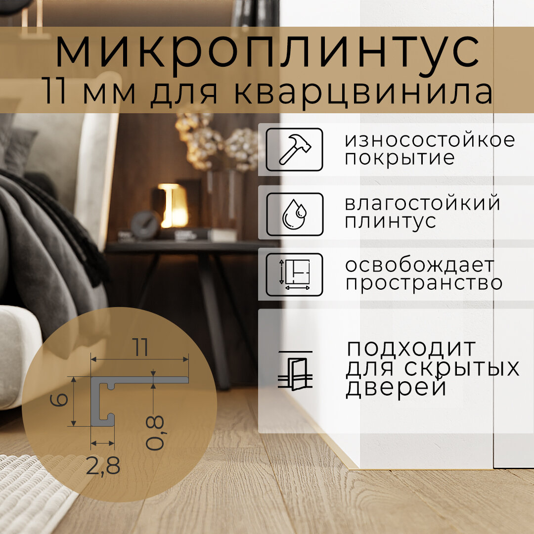 Микроплинтус 11 мм для кварцвинила Серый Телегрей 4 RAL 7047 (2.5 метра)
