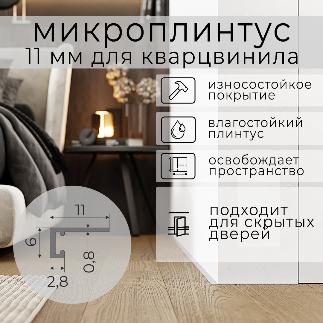 Микроплинтус 11 мм для кварцвинила Чёрный RAL 9005 (2.5 метра)