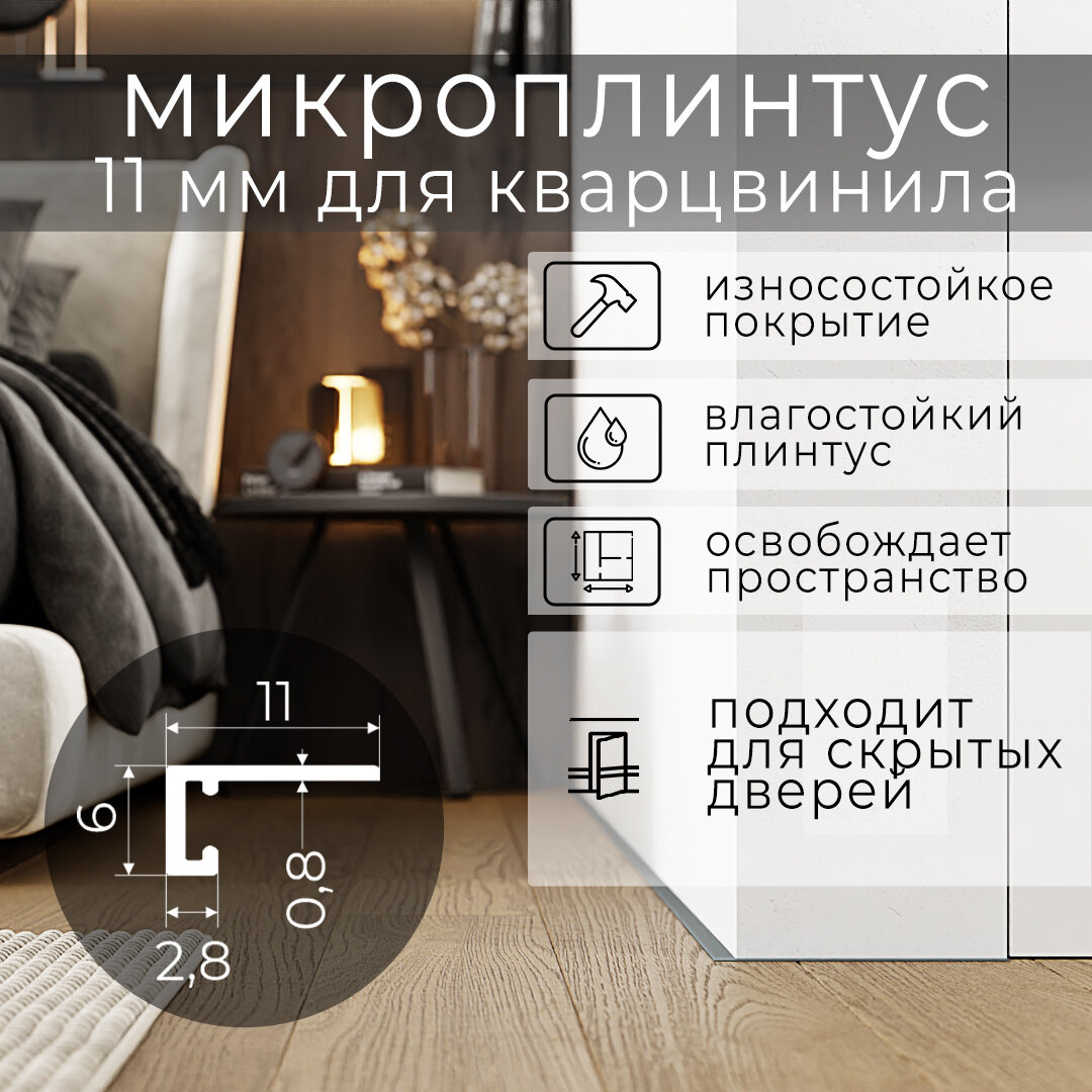 Микроплинтус 11 мм для кварцвинила Белый RAL 9003 (2.5 метра)