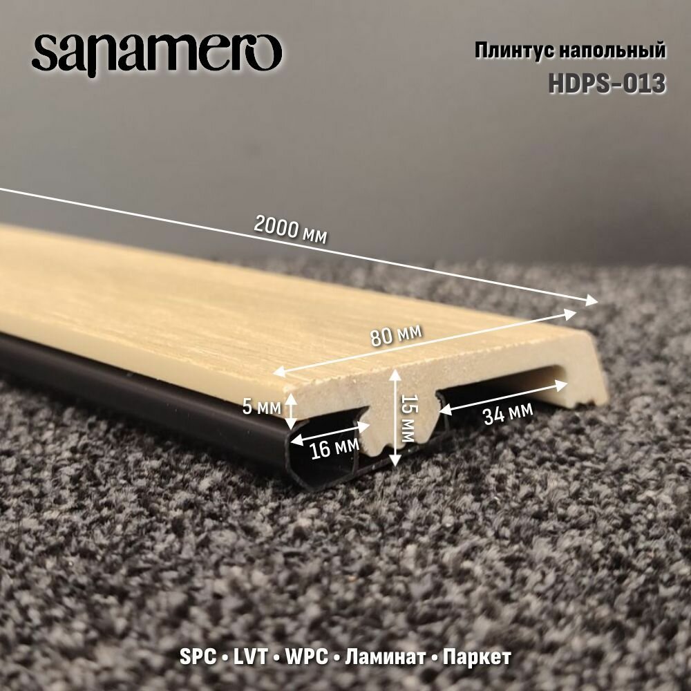 Плинтус напольный Sanamero HDPS 014 ударопрочный, водонепроницаемый дюрополимер (экополимер) 2000 мм, 80 х 15 мм, 1 шт.