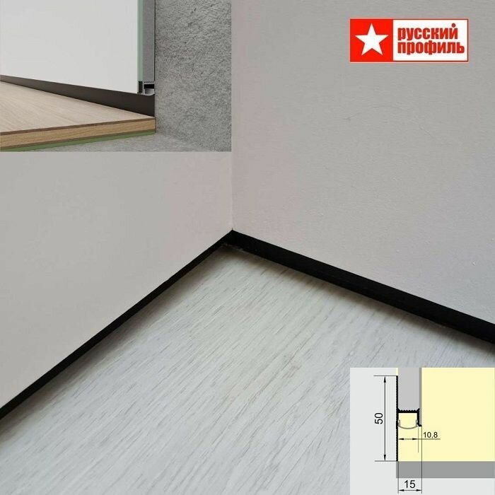 Плинтус напольный теневой 50 х 15 х 2500 мм, Чёрный матовый , Без рассеивателя