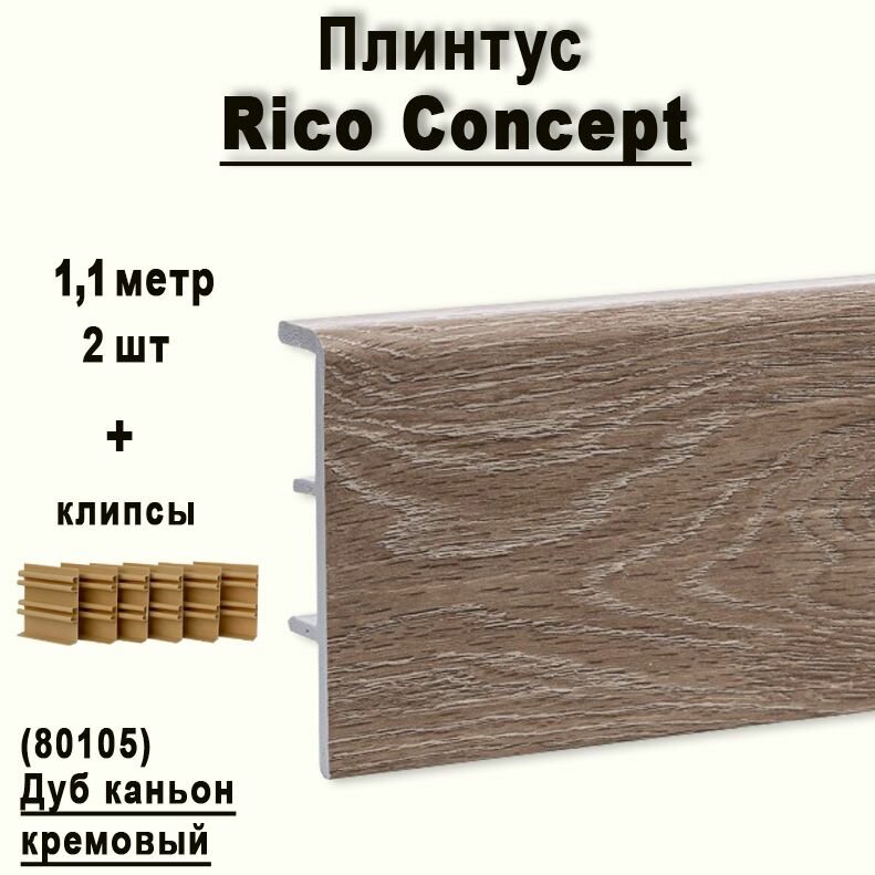 Купить Высокий плинтус Rico Concept 80мм Дуб каньон кремовый (80105), 2 шт. по 1,1 м. + крепёж