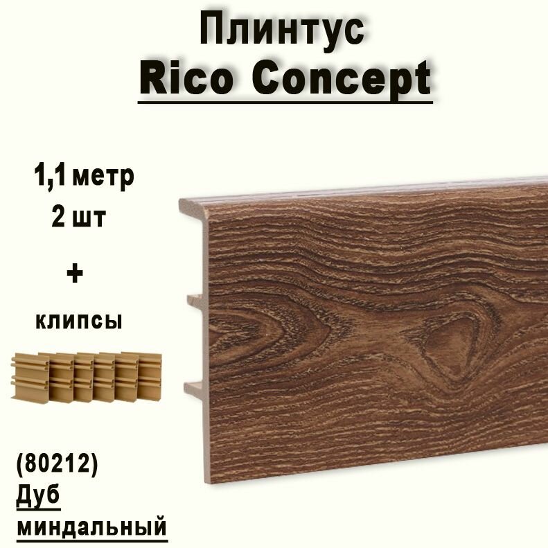 Купить Высокий плинтус Rico Concept 80мм Дуб миндальный (80212), 2 шт. по 1,1 м. + крепёж