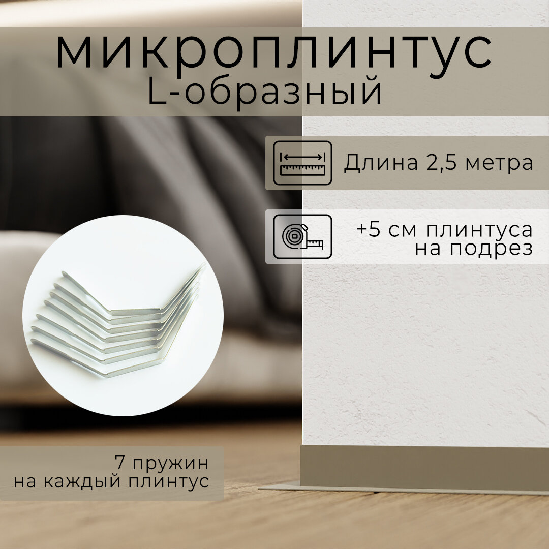 Микроплинтус L-образный с пружинами Серо-белый RAL 9002 (2,5 метра)