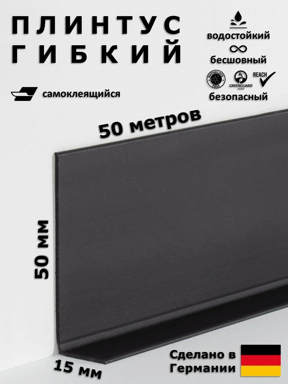 Плинтус гибкий самоклеящийся Dollken WLK50 110 Черный 50x15 мм, 25 м