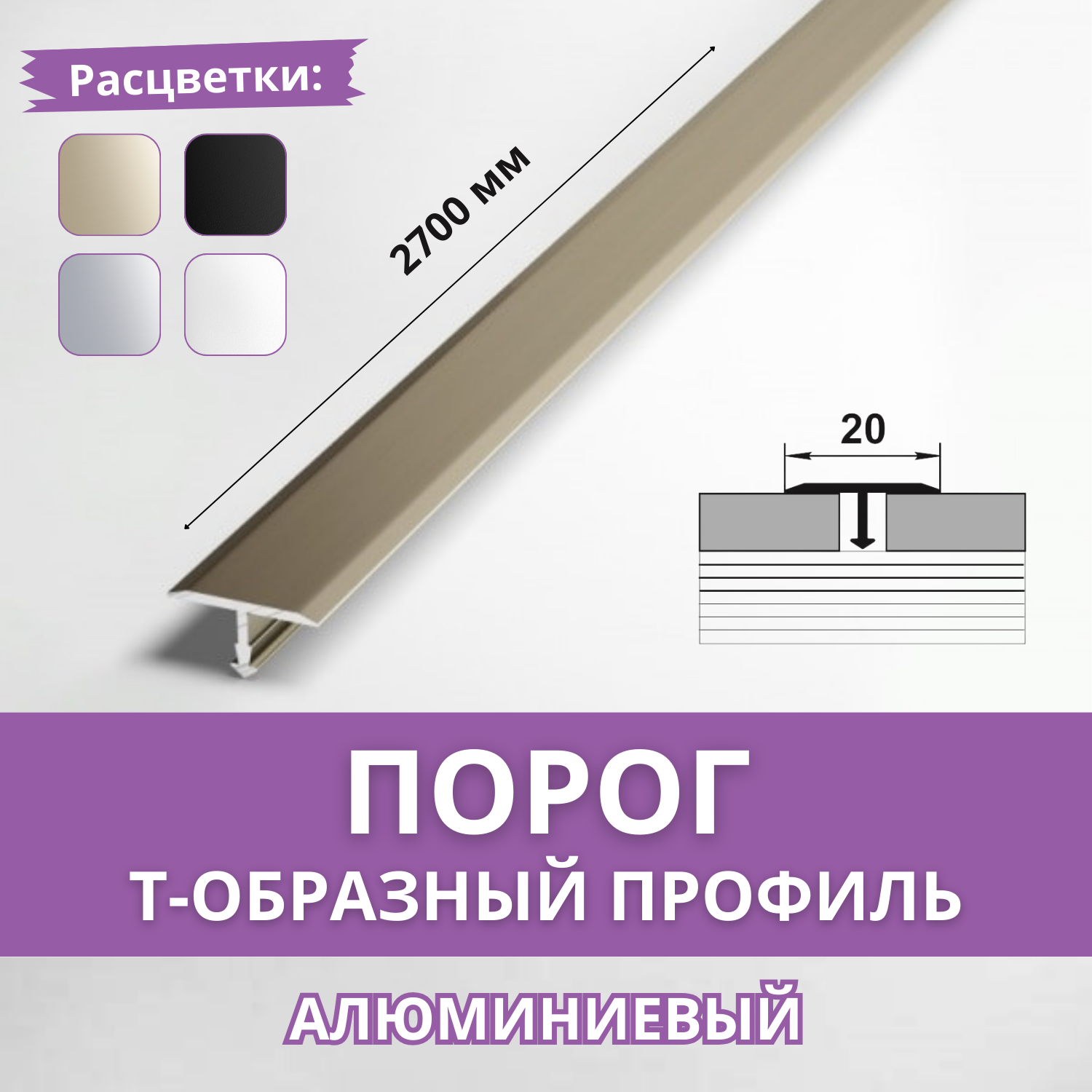 Порог (профиль) Т-образный Лука ЛС 10.2700.042л шампань 270 см. интересное: