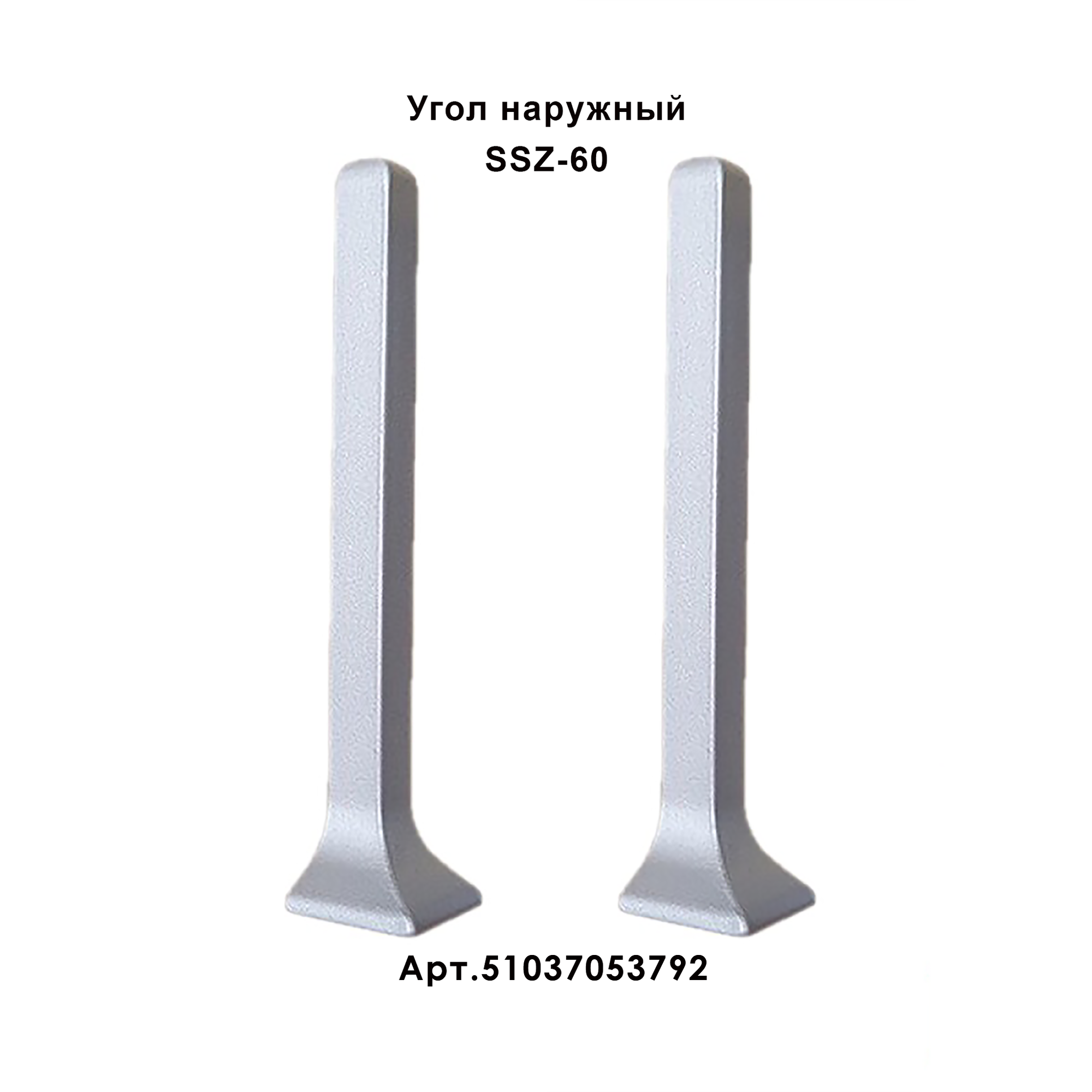 Плинтус напольный алюминиевый SSZ-60-2500, с крепежом, Серебро матовое, 5 шт