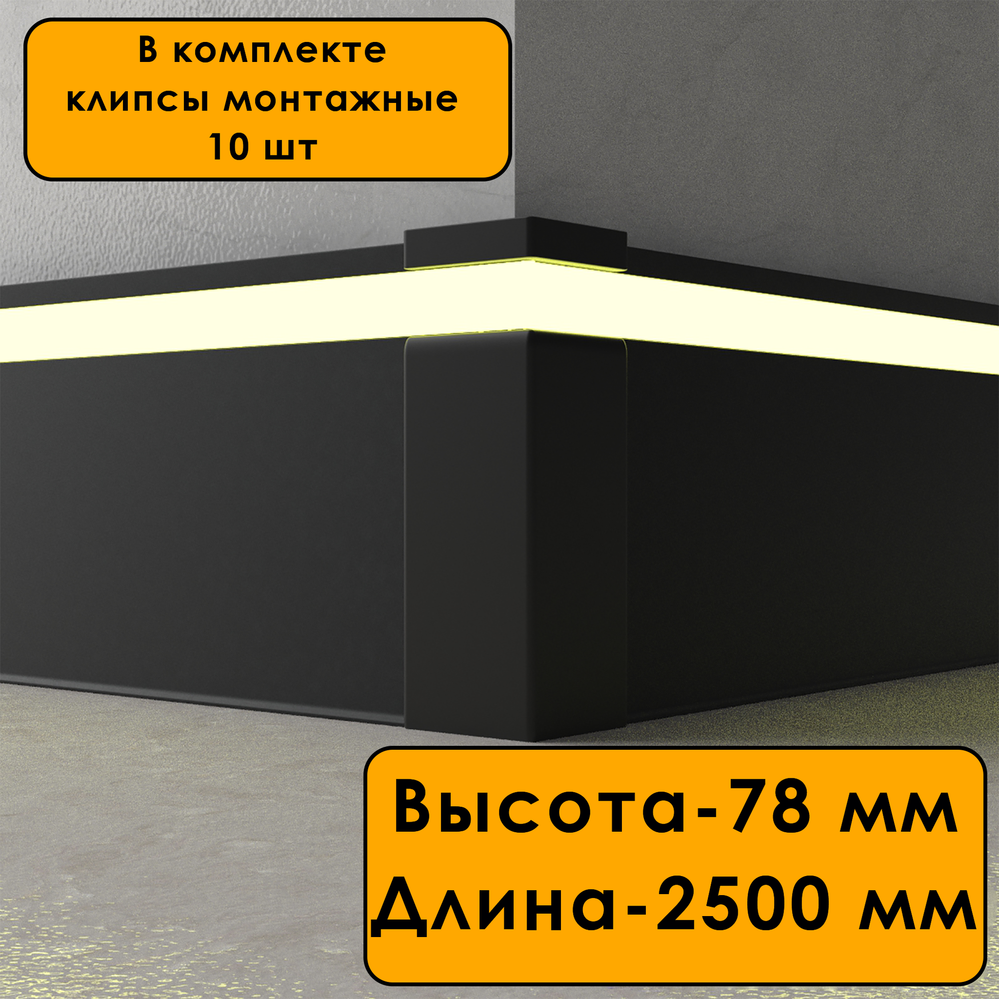 Плинтус алюминиевый напольный LED-78-80-2500 под подсветку, накладной, Черный матовый, 2 шт интересное: