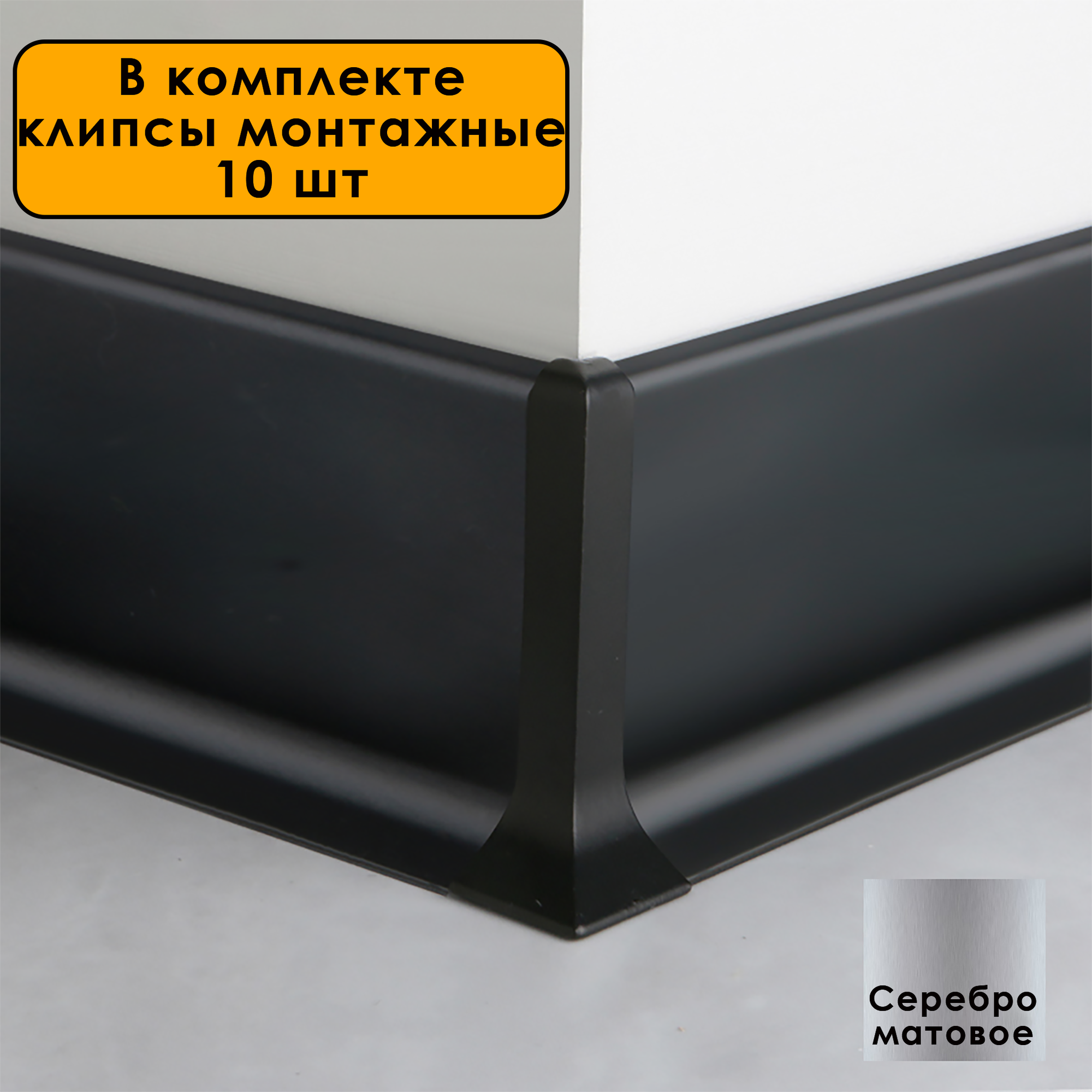 Плинтус на клипсах SSZ-60 мм алюминиевый черный матовый 2.5 м/+5 клипс