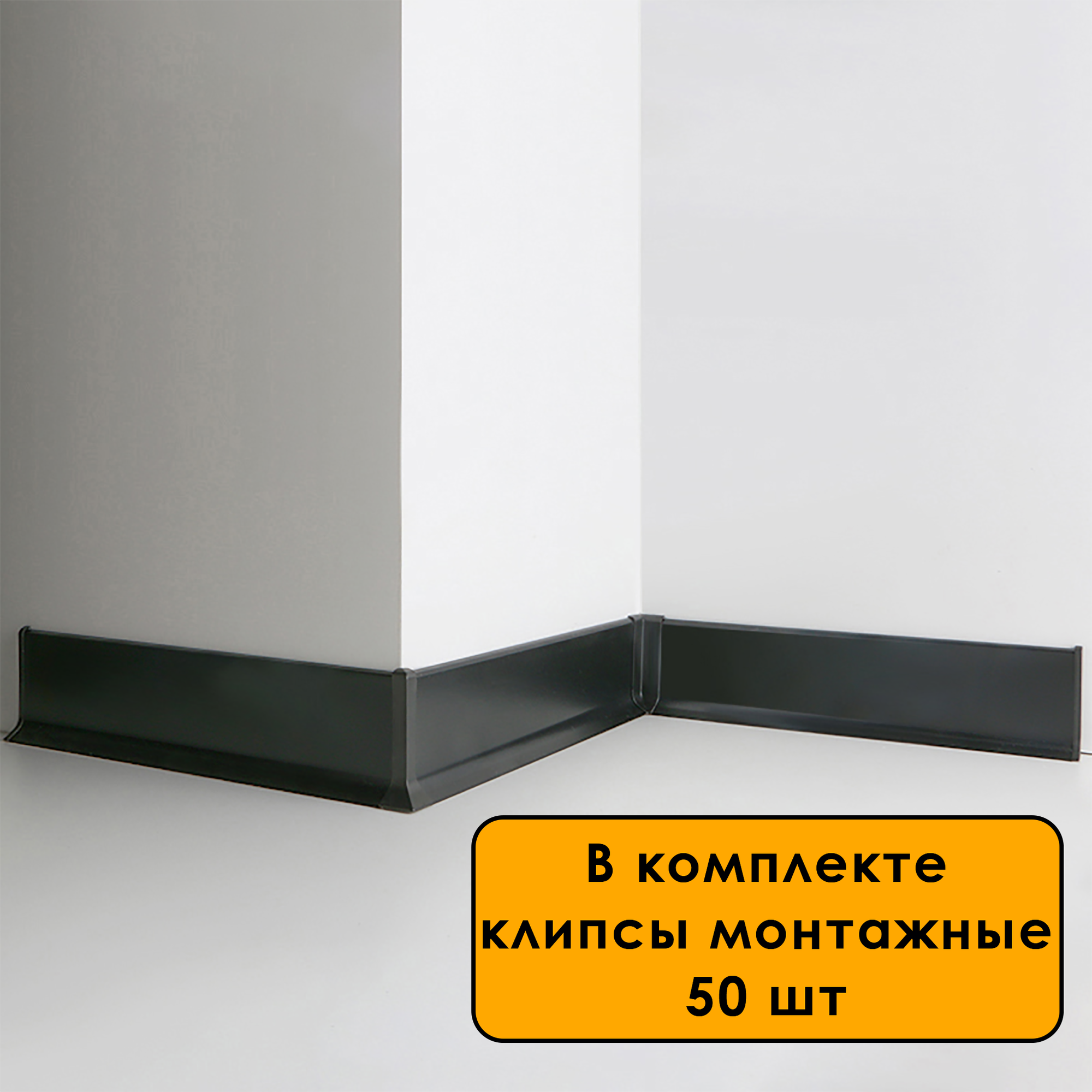 Плинтус на клипсах SSZ-60 мм алюминиевый черный матовый 2.5 м/+5 клипс