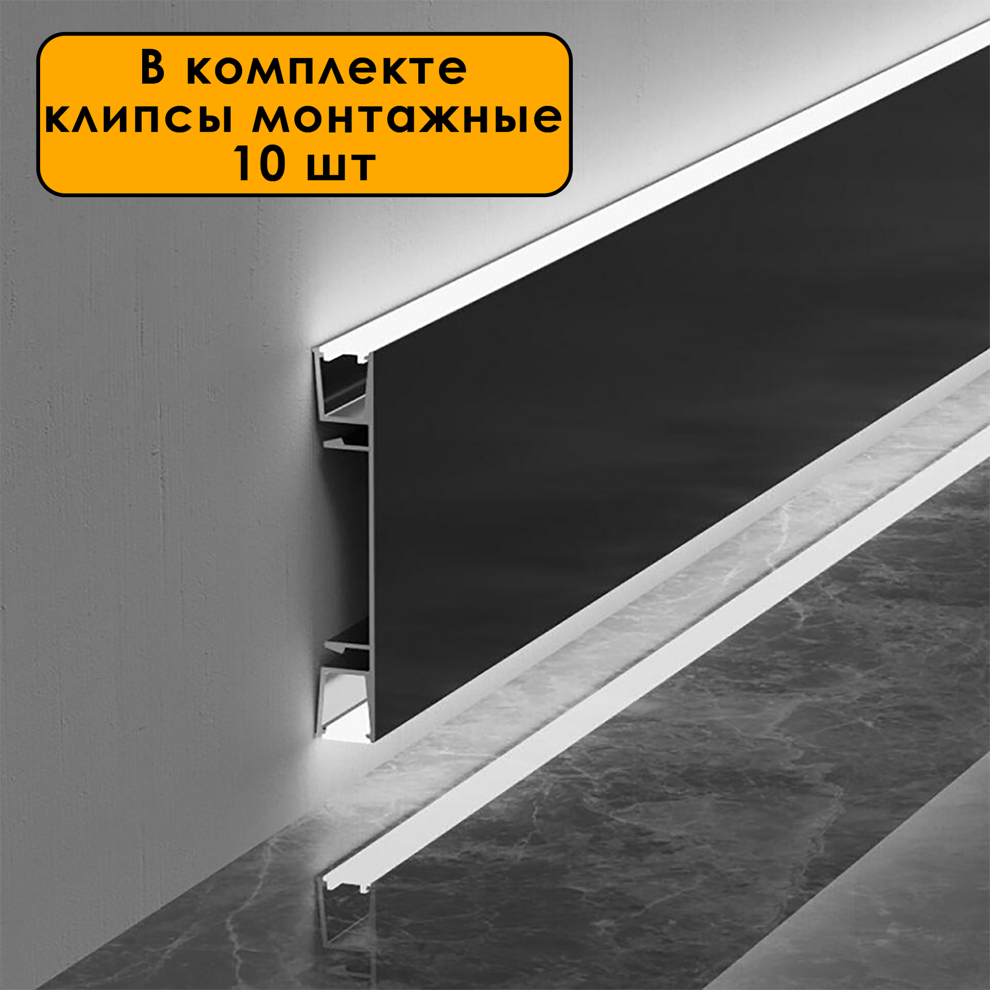 Плинтус на клипсах SSZ-60 мм алюминиевый черный матовый 2.5 м/+5 клипс