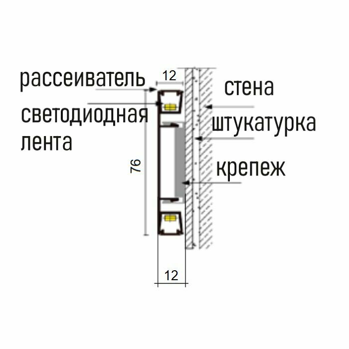 Плинтус накладной для светодиодной ленты JM-76-LED-2500 с рассеивателем, 1 шт