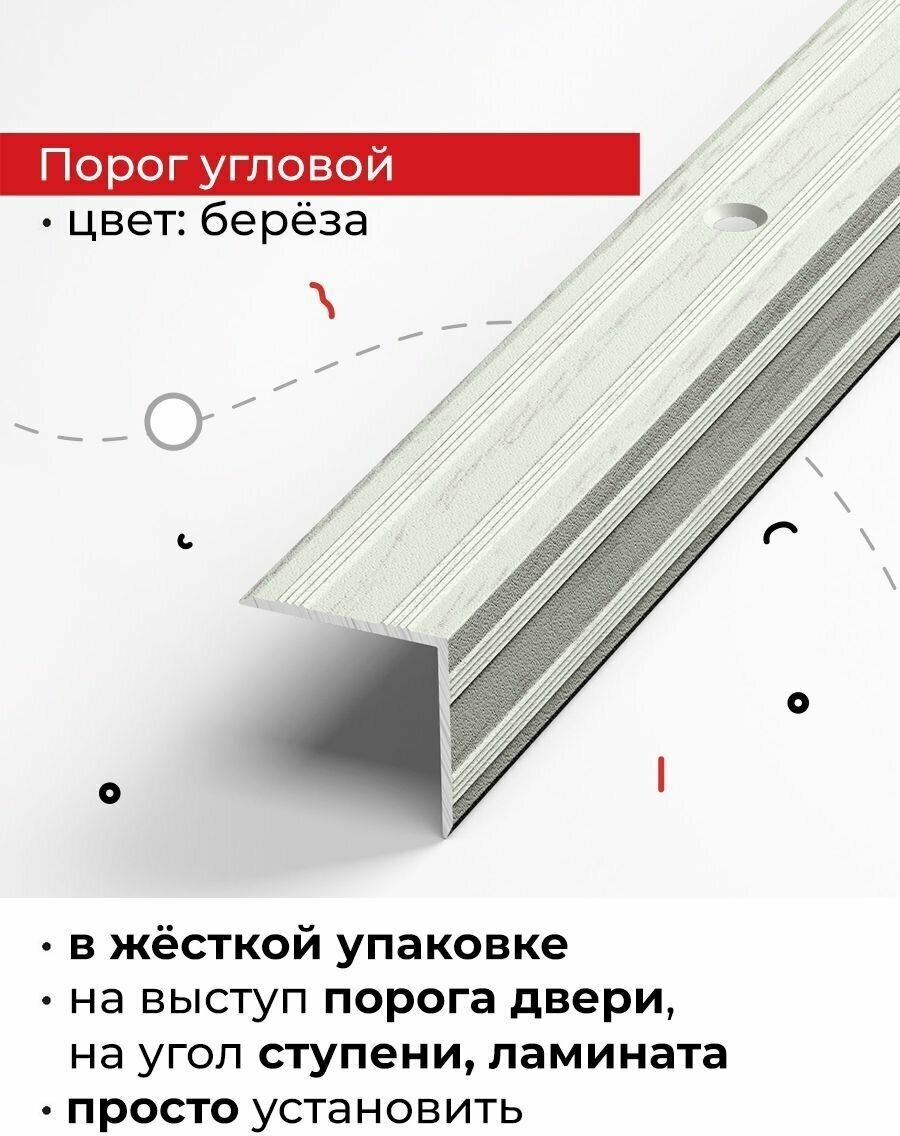 Порожек для напольных покрытий 20х20 мм, длина 1,8 м, профиль-уголок алюминиевый Лука ПУ 05, декор берёза R174