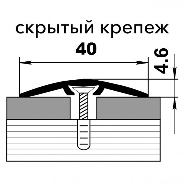 Порог со скрытым креплением одноуровневый для напольных покрытий, ширина 40мм, длина 1,8м, Русский профиль, Стык с дюбелем 40 мм 1,8 токио