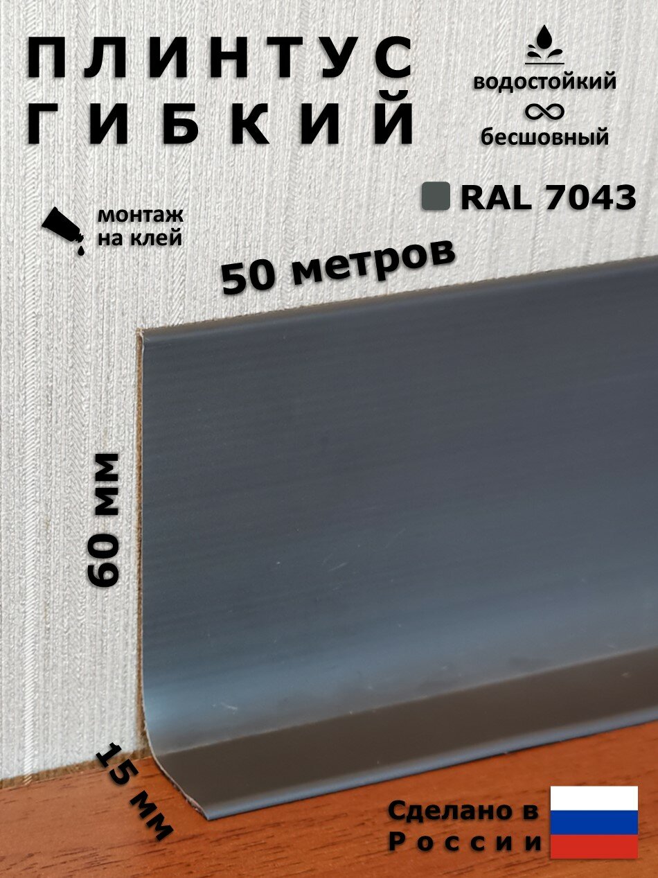 Плинтус гибкий напольный JL60 темно-серый 60x15 мм, 50 м, Первый Профильный Завод интересное: