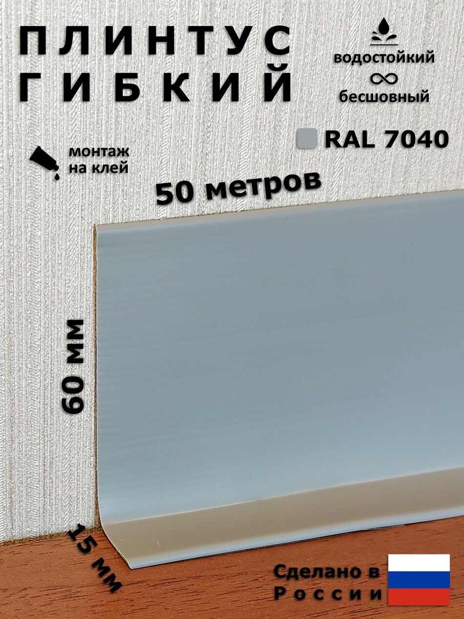 Купить Плинтус гибкий напольный JL60 светло-серый 60x15 мм, 50 м, Первый Профильный Завод
