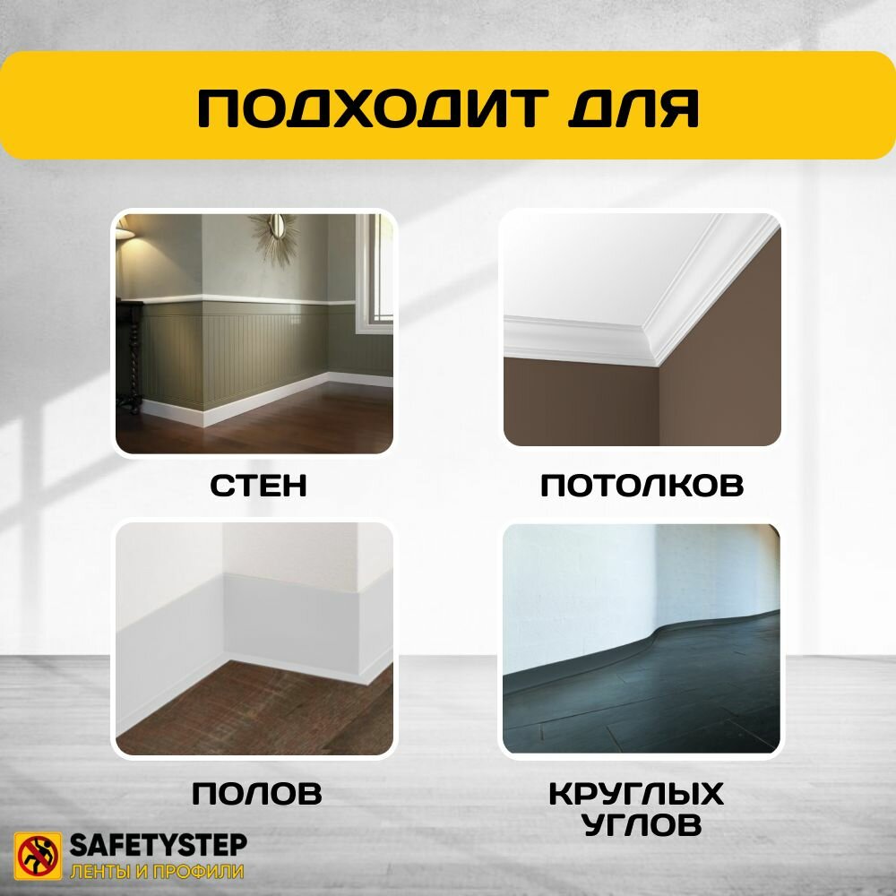 Гибкий плинтус напольный самоклеящийся усиленный, 70 мм х 5 метров, белый интересное: