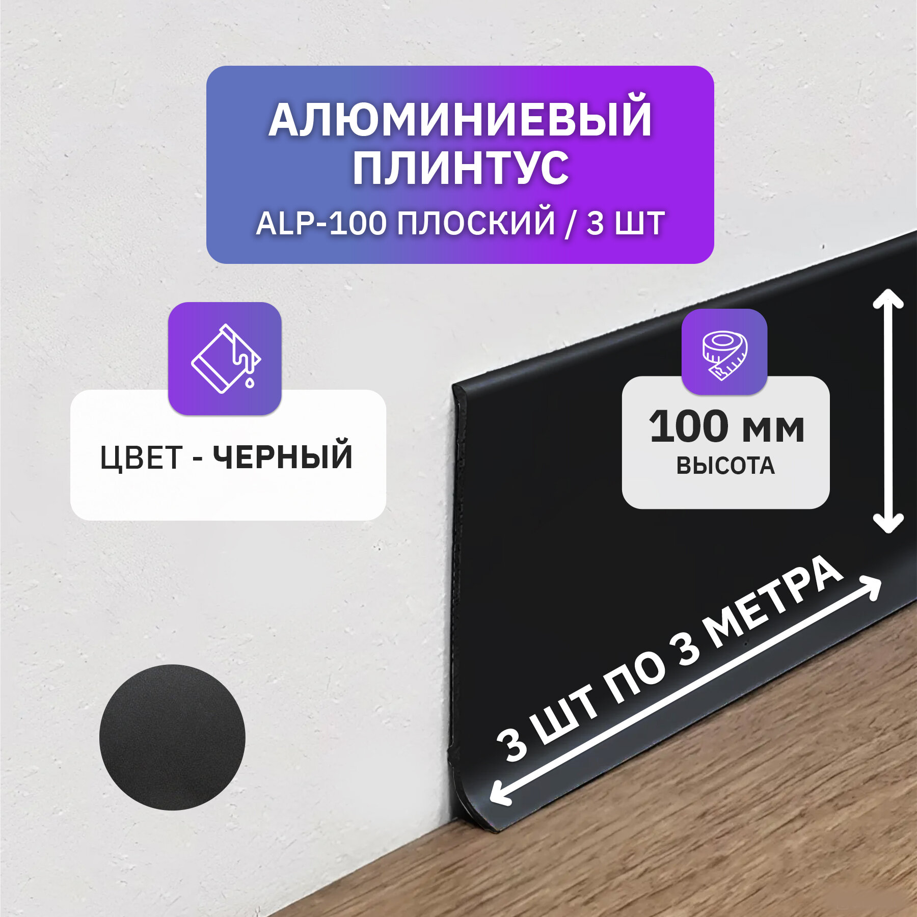 Купить Плинтус напольный плоский алюминиевый 3 метра, 100 мм высотой, черный, 3 шт