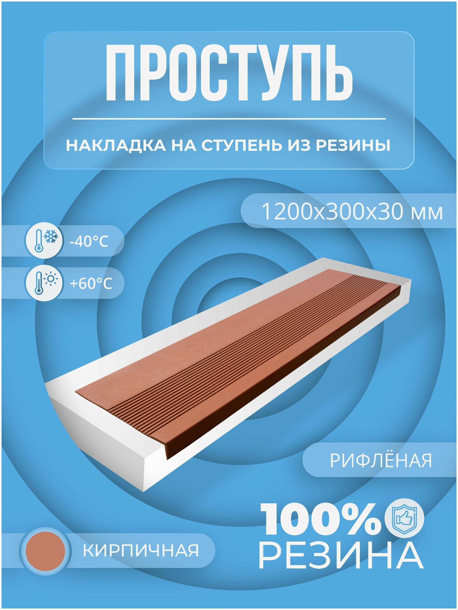 Накладка на ступень резиновая противоскользящая (Проступь) Удлиненная рифленая 1200x300x30 / цвет Кирпич интересное: