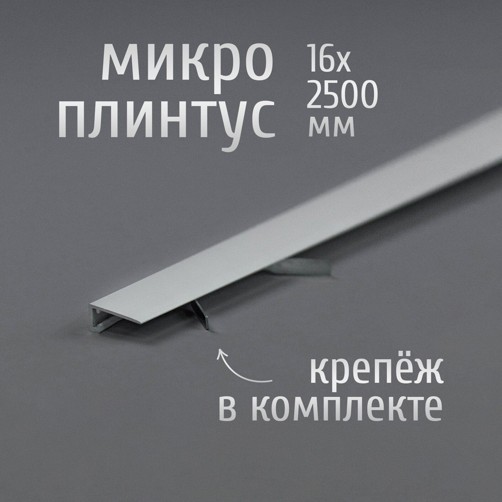 Щелевой микроплинтус для пола Профиль-ОПТ MP-KIT, 16х2500 мм, серебро матовое, комплект пружин 70 шт. + плинтус 10 шт.