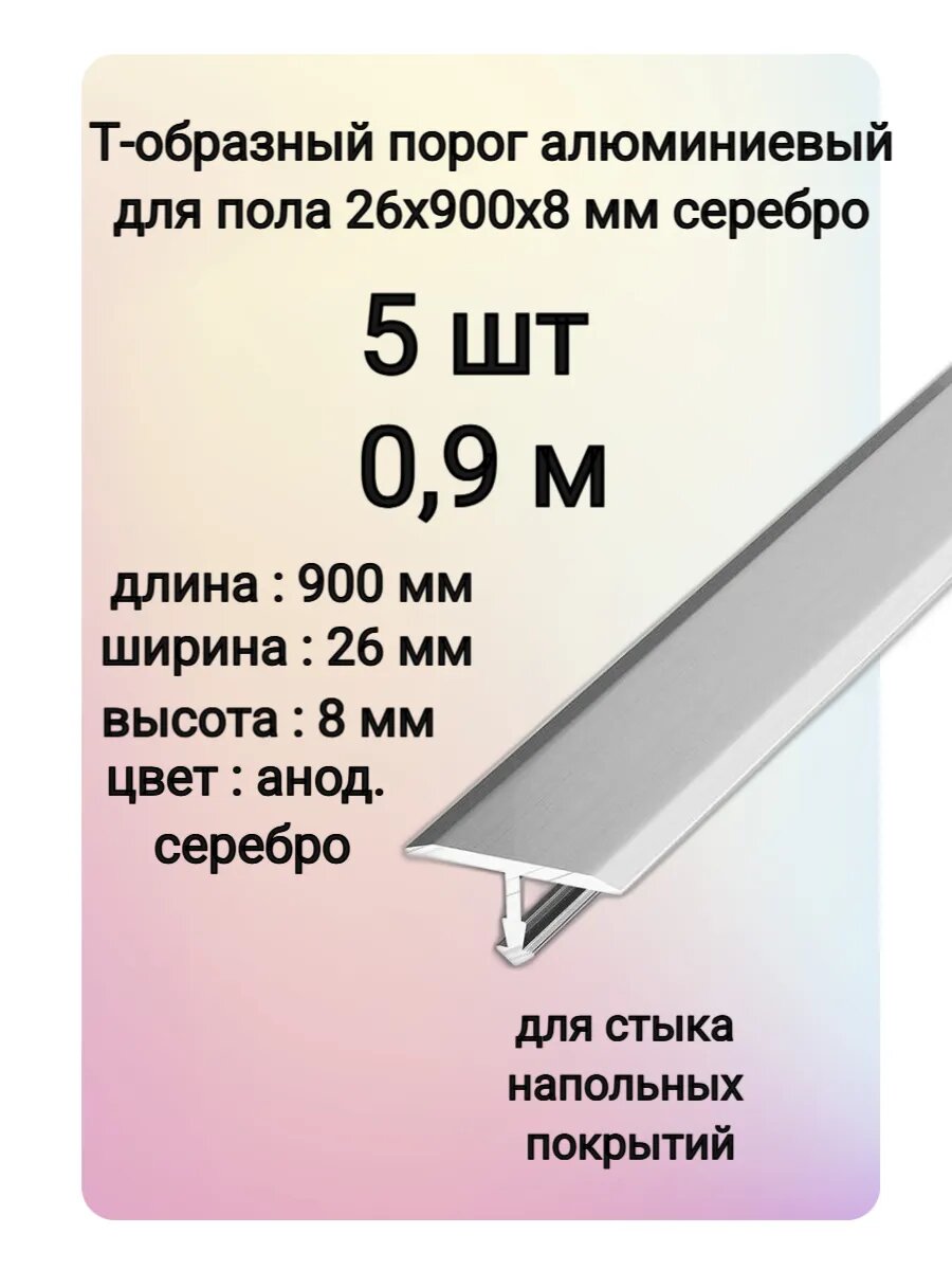 Купить Т-образный порог алюминиевый для пола 26х900х8 мм цвет серебро 5 шт