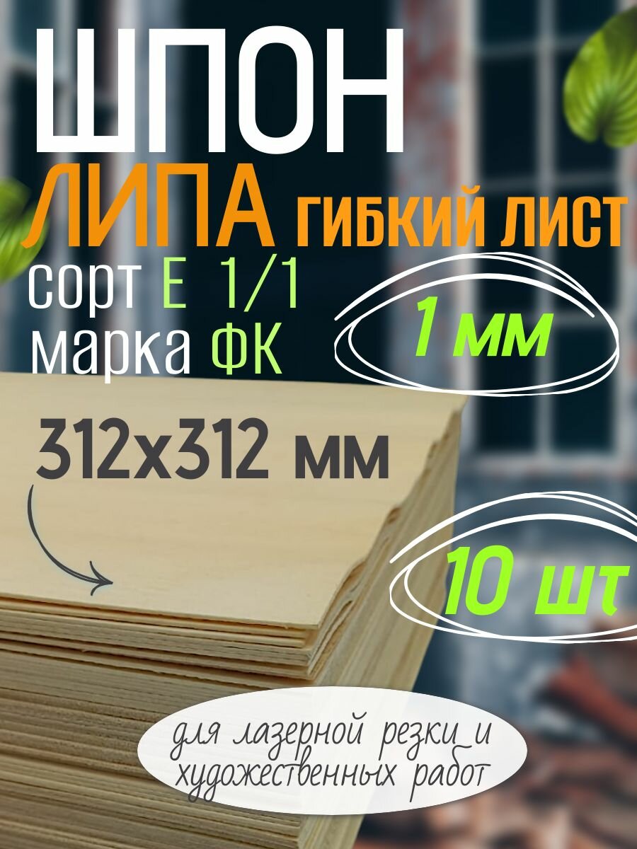 Листовой шпон гибкий 1мм липа 312х312 мм, 10 листов для лазерной резки интересное: