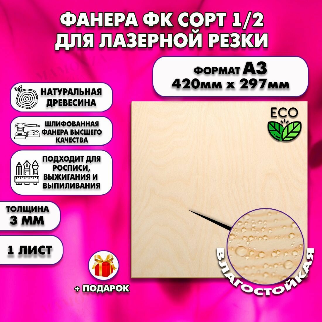 Купить Фанера для уроков труда, рисования и творчества, Размер А3 (420 х 297), 1 штука, Толщина 3мм, сорт высший сорт