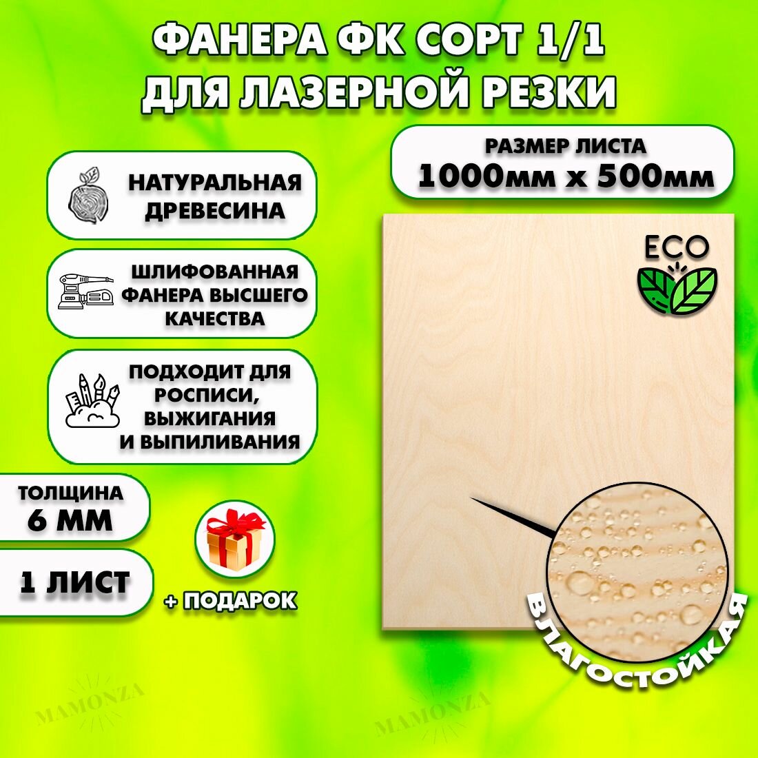 Купить Фанера для лазерной резки и гравировки, Строительная, Мебельная, Размер 1000х500, 1 лист, Толщина 6мм, сорт 1/1