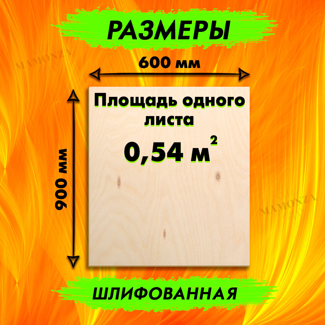 Фанера для лазерной резки и гравировки, Строительная, Мебельная, Размер 600х900, 3 листа, Толщина 10мм, сорт 2/2
