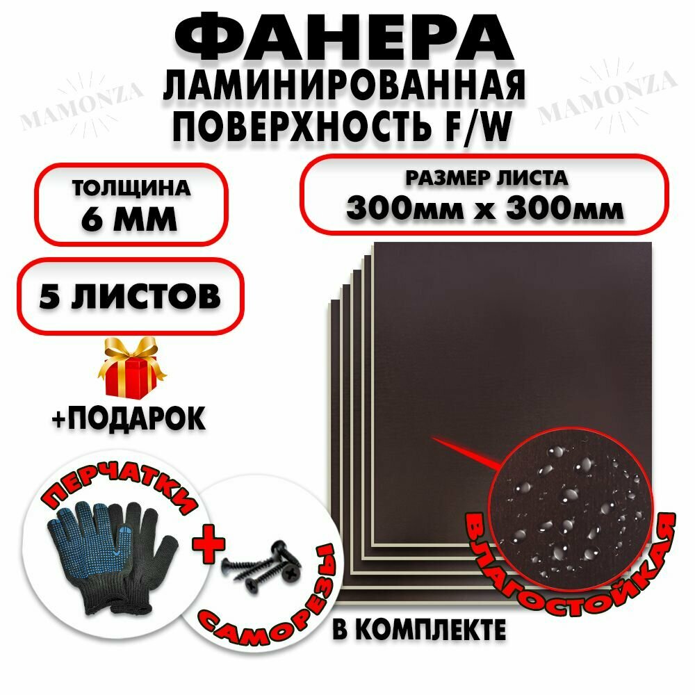 СохранитьФанера ФСФ ламинированная/сетчатая F/W толщина 6мм 300х300мм 5 листов интересное: