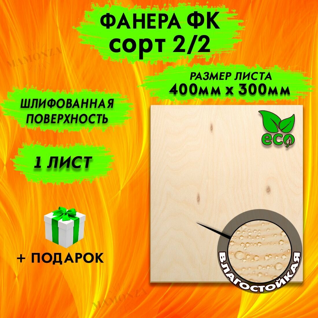 Фанера для лазерной резки и гравировки, Строительная, Мебельная, Размер 400х300, 1 лист, Толщина 4мм, сорт 2/2