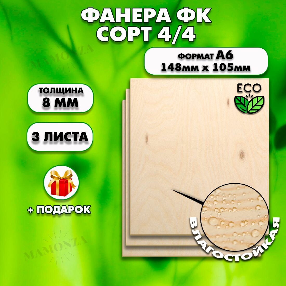 Купить Фанера для уроков труда, рисования и творчества, Размер А6 (105х148), 3 штуки, Толщина 8мм, сорт 4/4