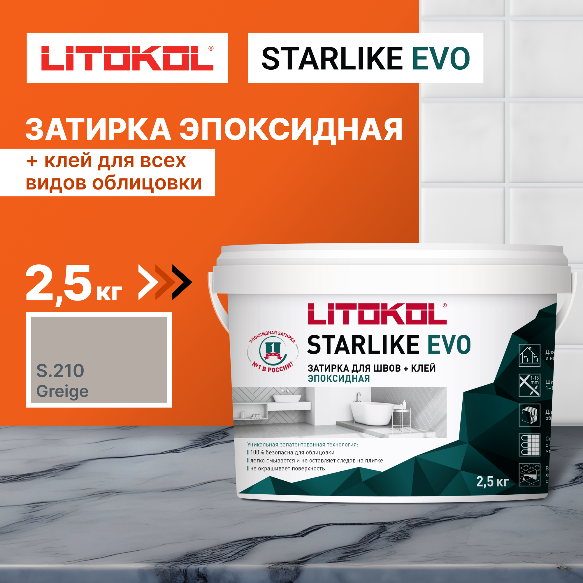 Купить Затирка LITOKOL Starlike Evo S.210 Greige, 2,5 кг + 1 белый сменный блок