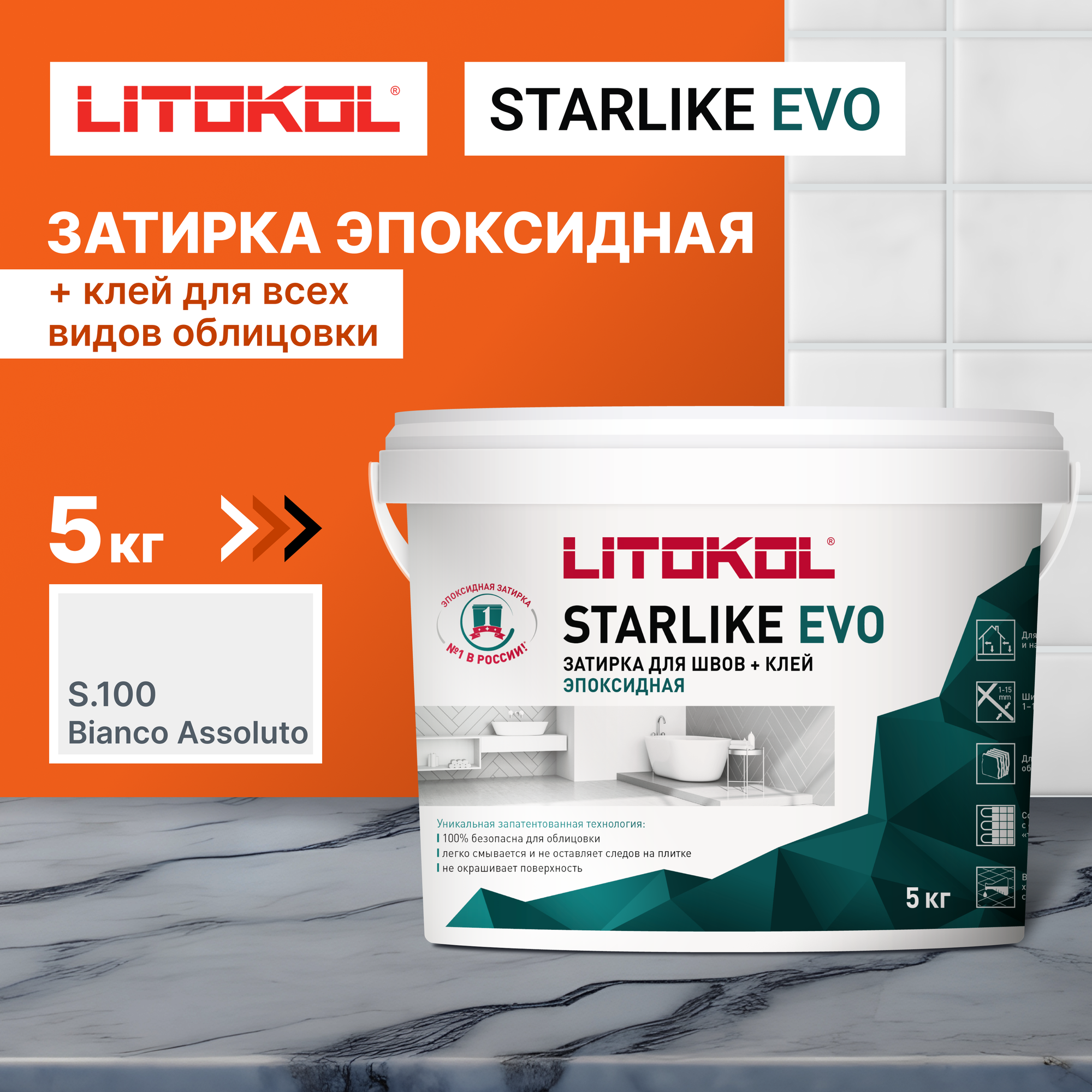 СохранитьЗатирка LITOKOL Starlike Evo S.100 Bianco Assoluto, 5 кг + 1 белый сменный блок интересное:
