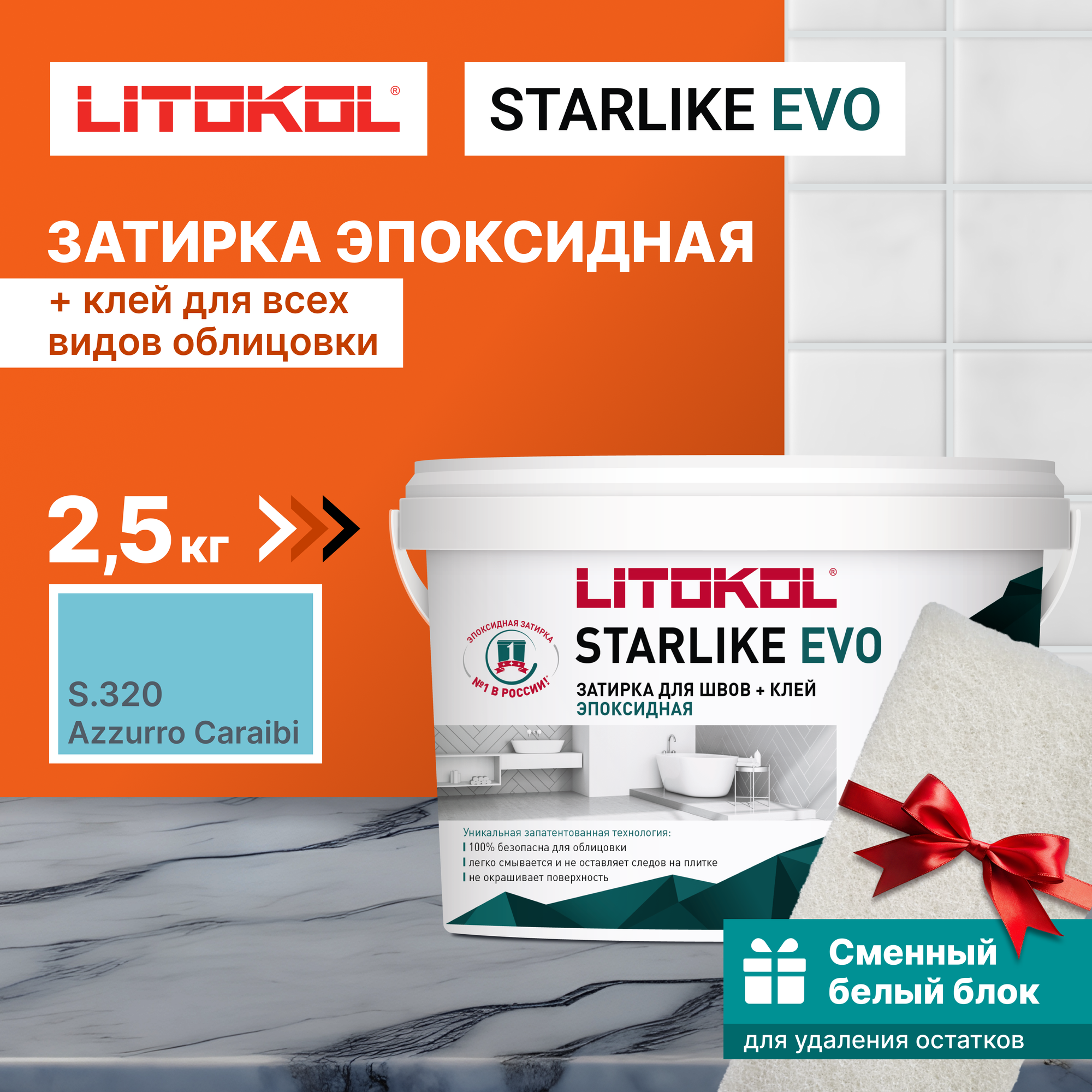 Купить Затирка LITOKOL Starlike Evo S.320 Azzurro Caraibi, 2,5 кг + 1 белый сменный блок