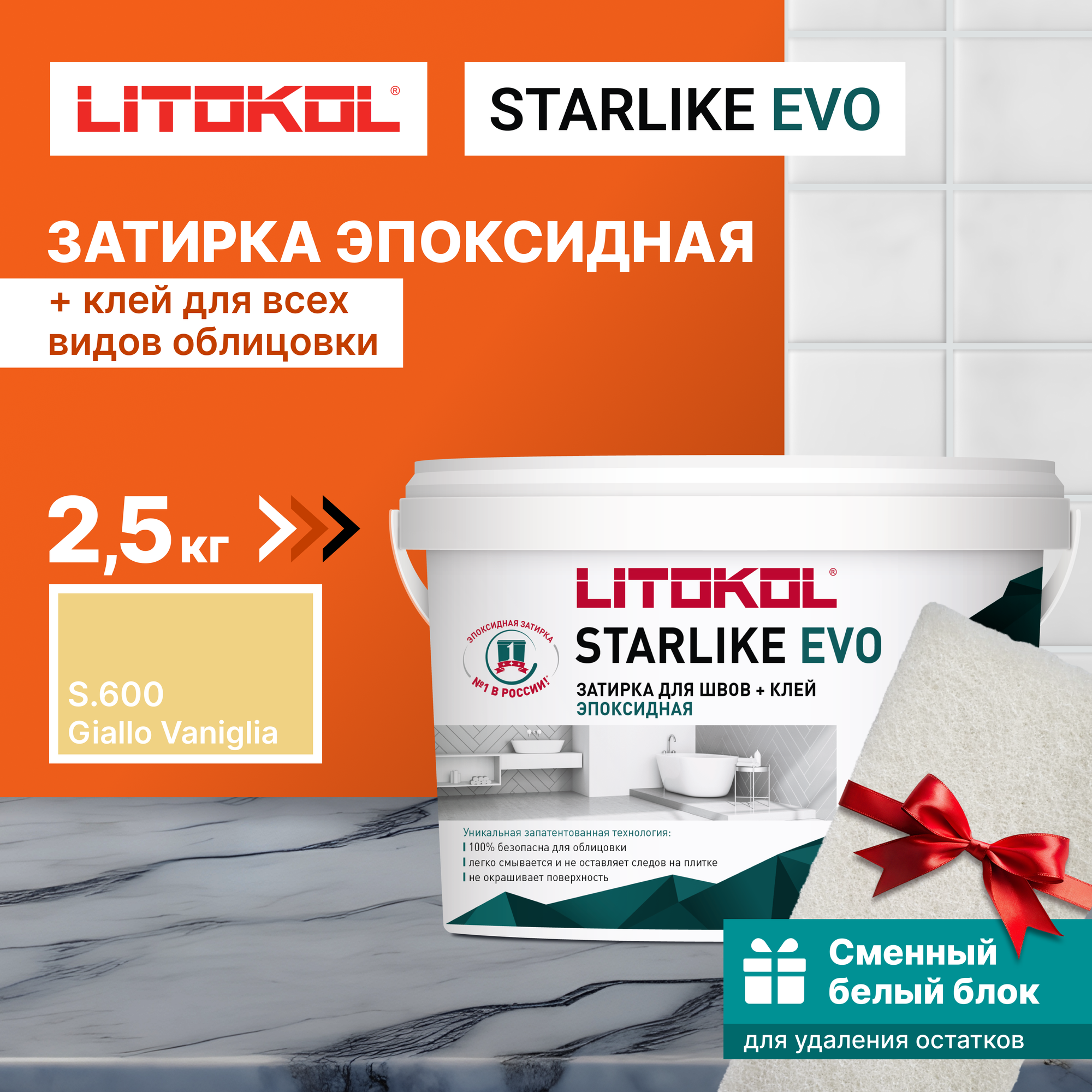 Купить Затирка LITOKOL Starlike Evo S.600 Giallo VanigliaI, 2,5 кг + 1 белый сменный блок