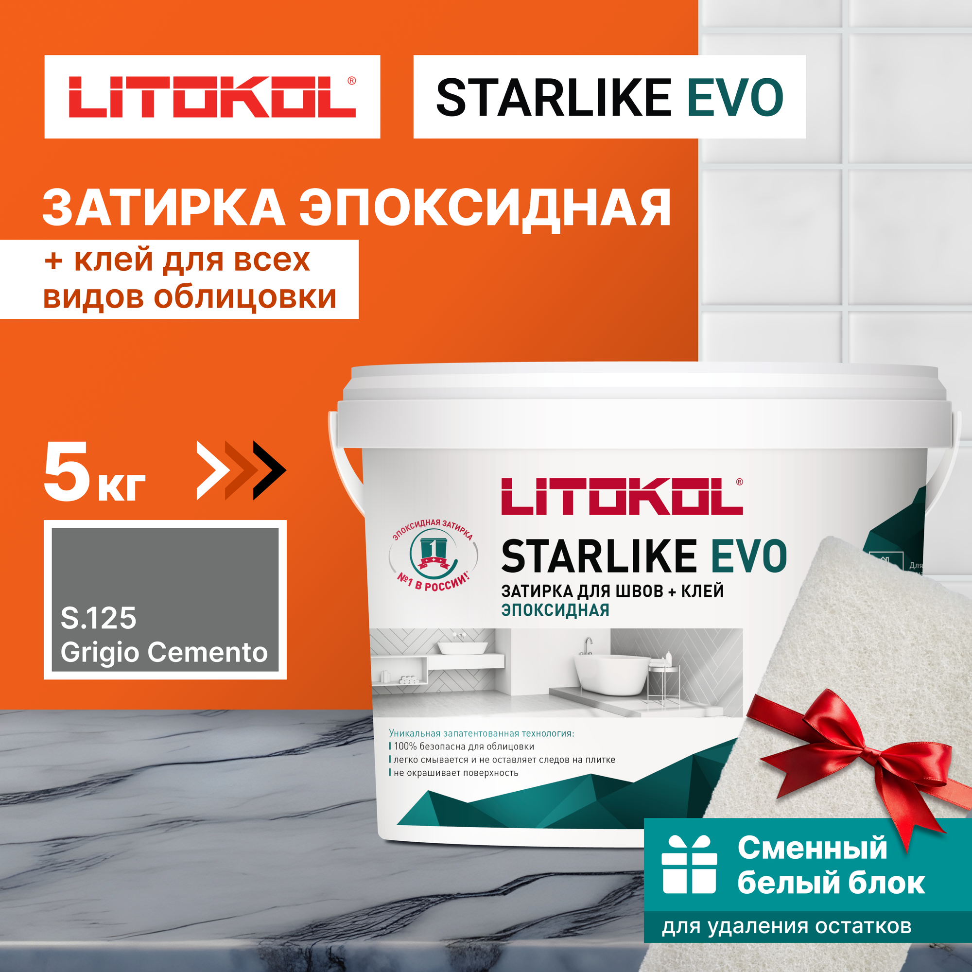 Купить Затирка LITOKOL Starlike Evo S.125 Grigio Cemento, 5 кг + 1 белый сменный блок