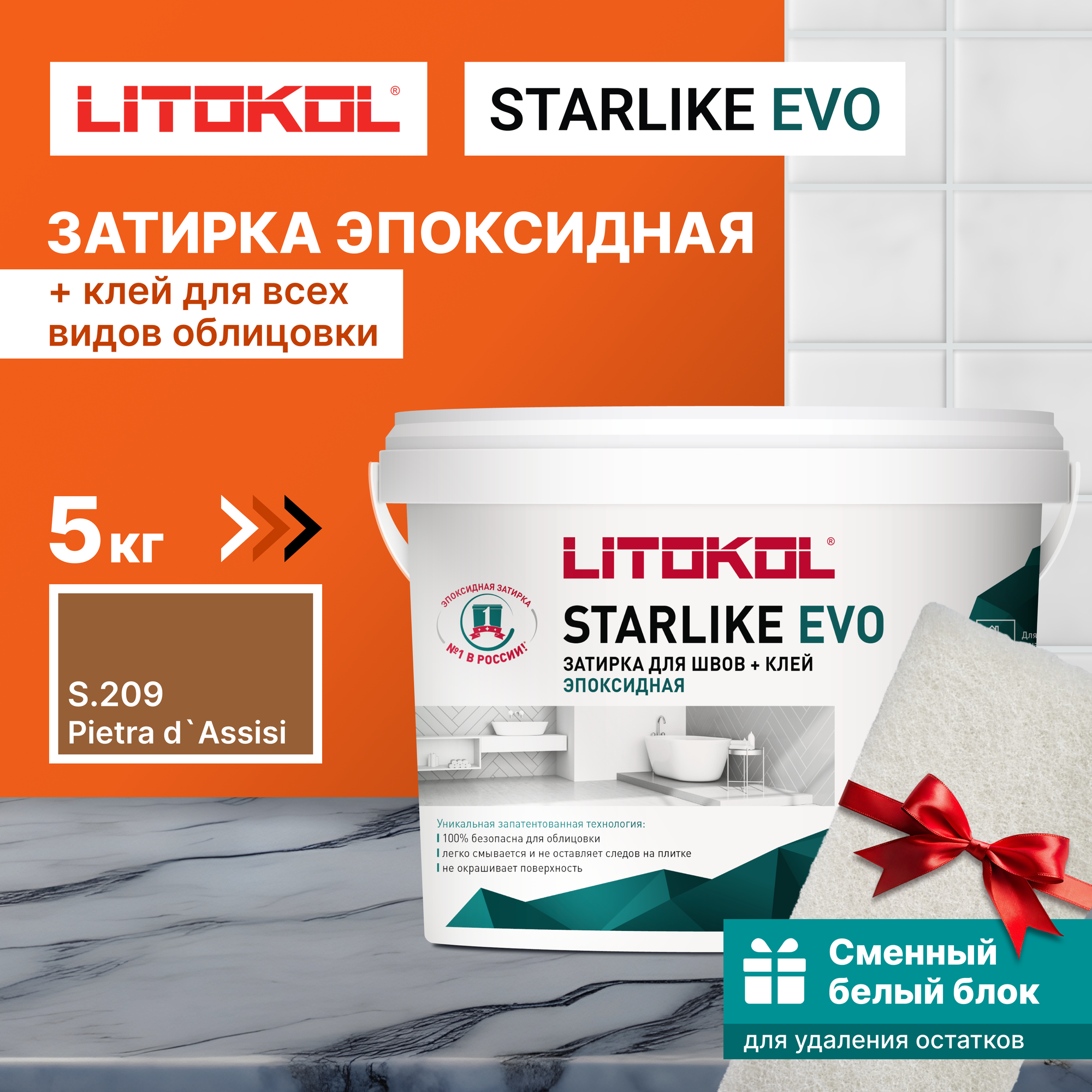 Затирка LITOKOL Starlike Evo S.232 Cuoio, 5 кг + 1 белый сменный блок