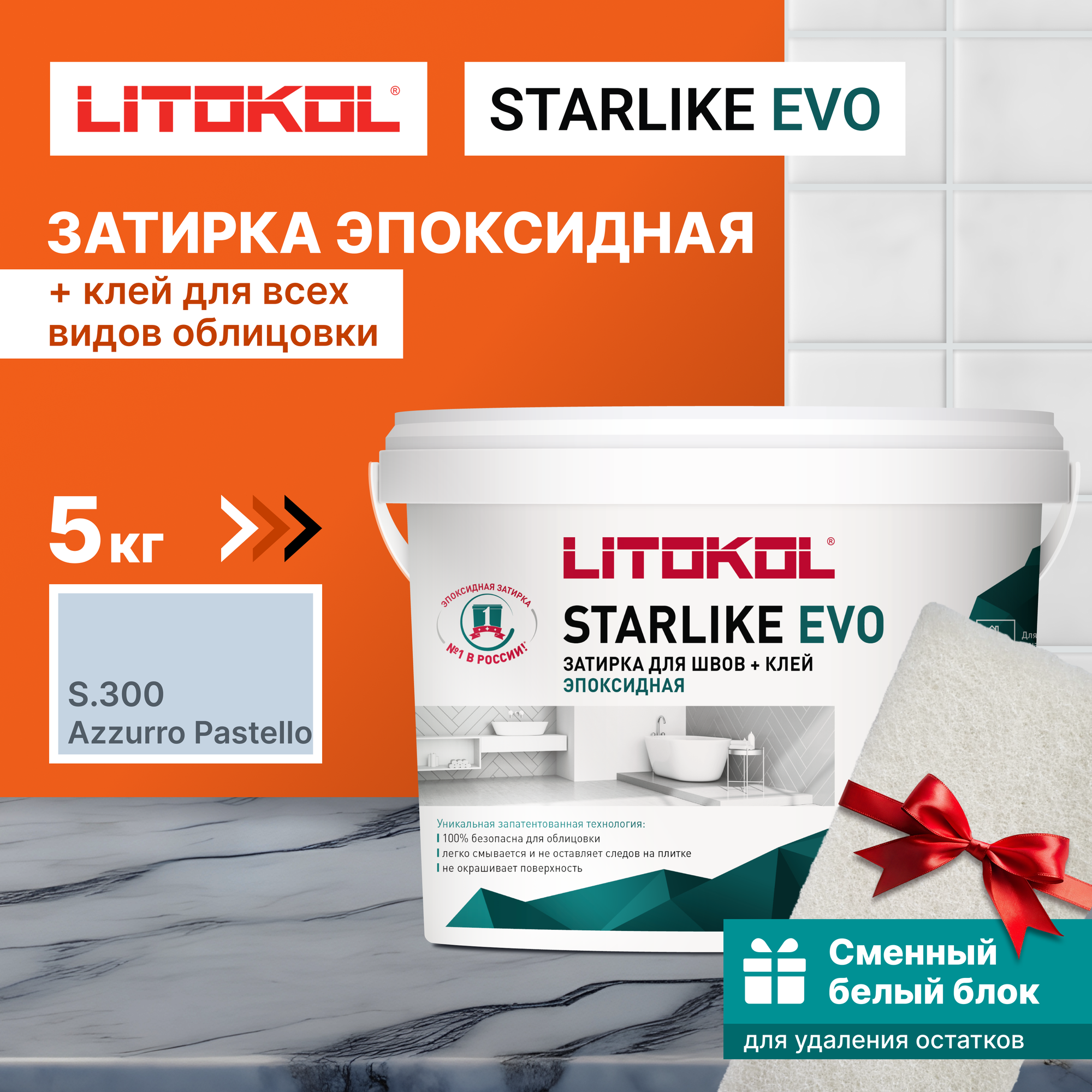 Затирка LITOKOL Starlike Evo S.300 Azzurro Pastello, 1 кг + 1 белый сменный блок