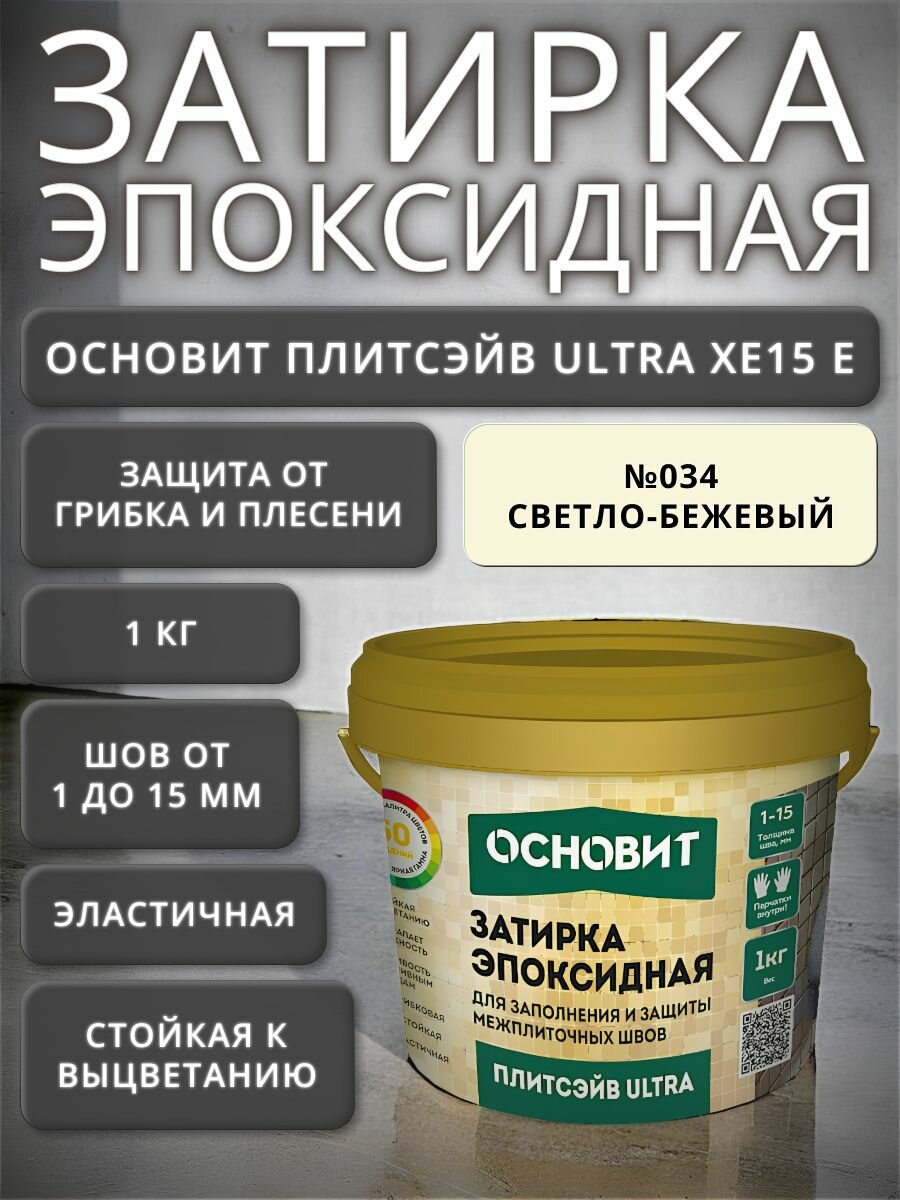 Купить Эпоксидная затирка для плитки основит плитсэйв ULTRA XE15 Е светло-бежевый 034 1 кг / противогрибковая, грязеотталкивающая, эластичная