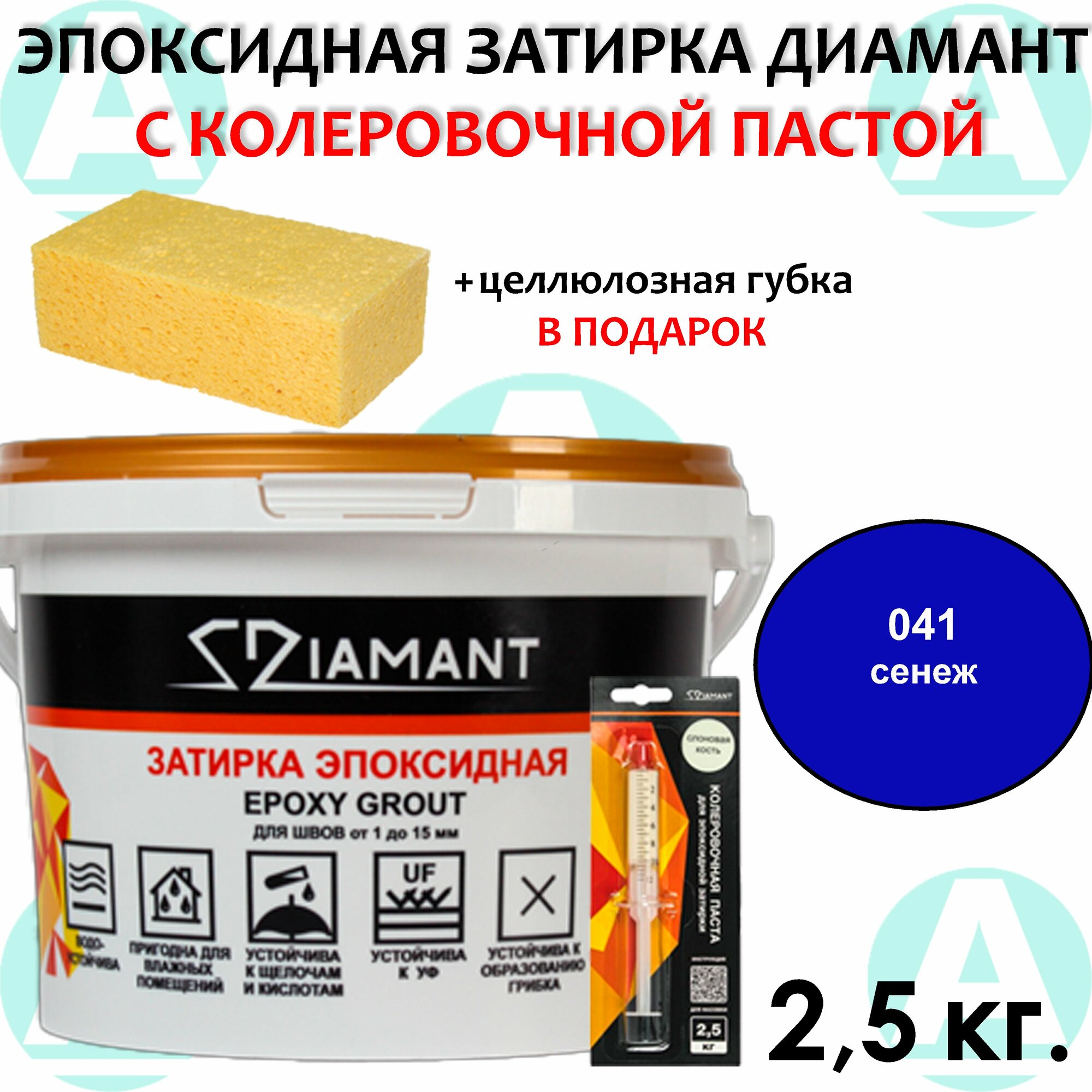 Эпоксидная затирка Диамант 046 Лагуна 2,5кг + губка в подарок!