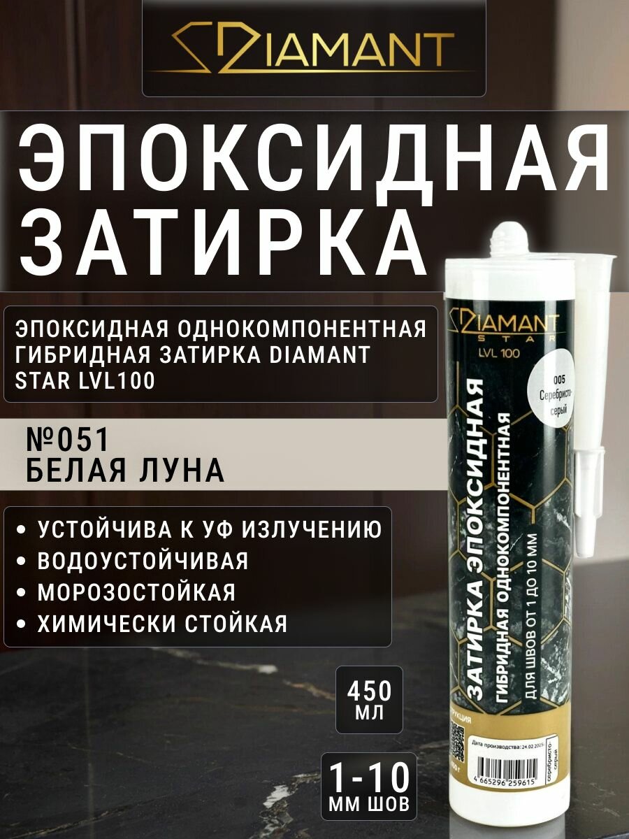 Купить Однокомпонентная эпоксидная гибридная затирка Diamant Star LVL 100 051 белая луна 450 г