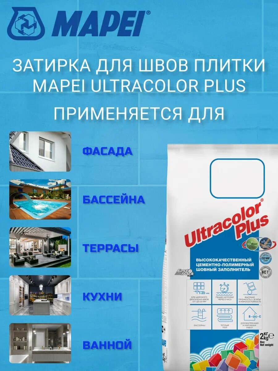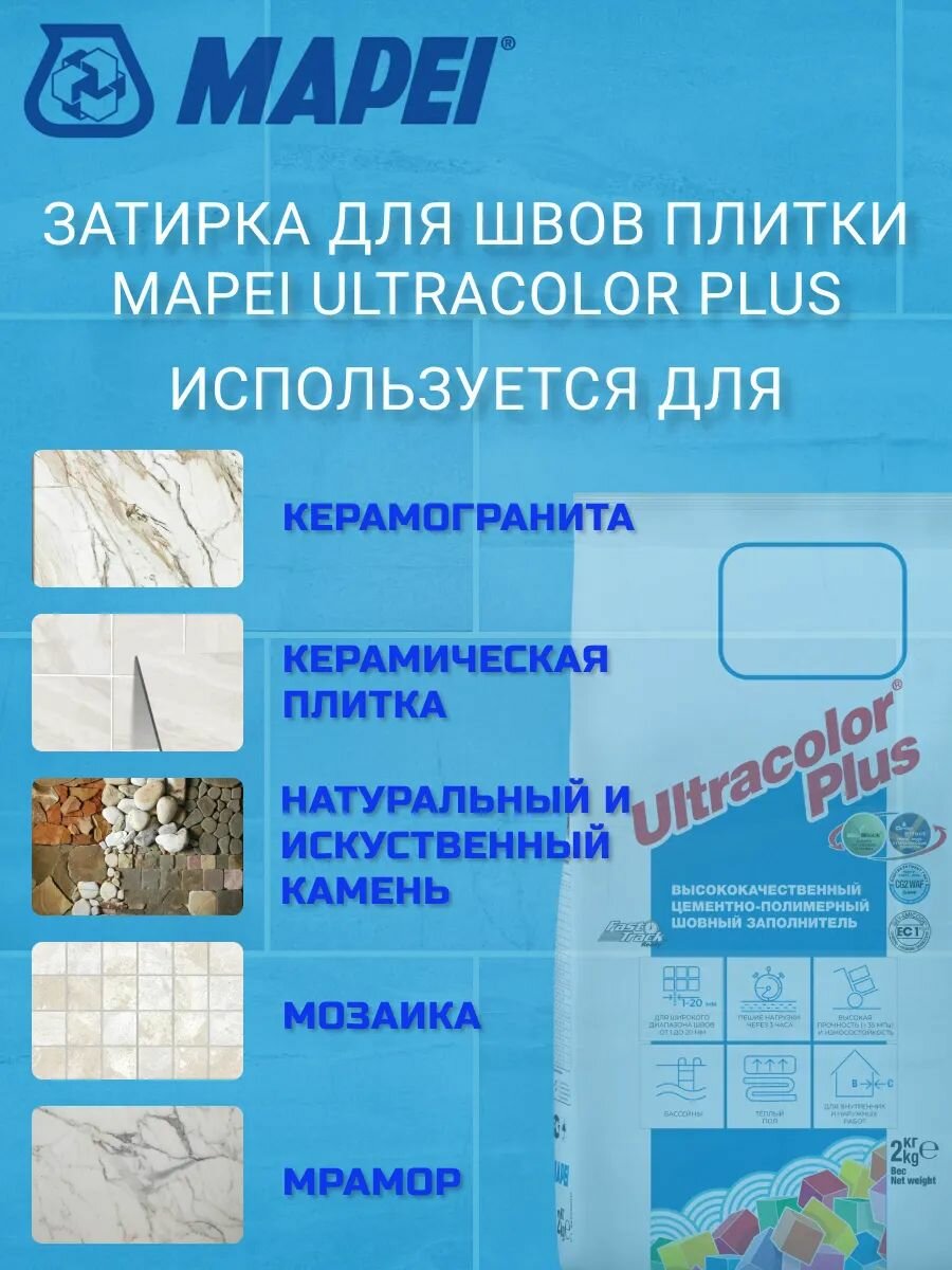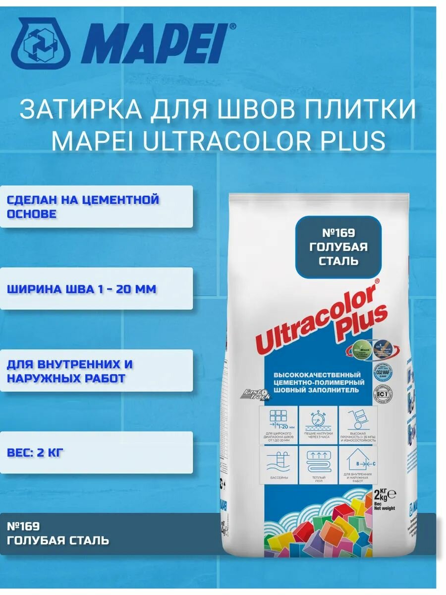 Затирка для плитки Mapei Ultracolor Plus №169 голубая сталь 2 кг / цементная затирка противогрибковая, влагостойкая интересное: