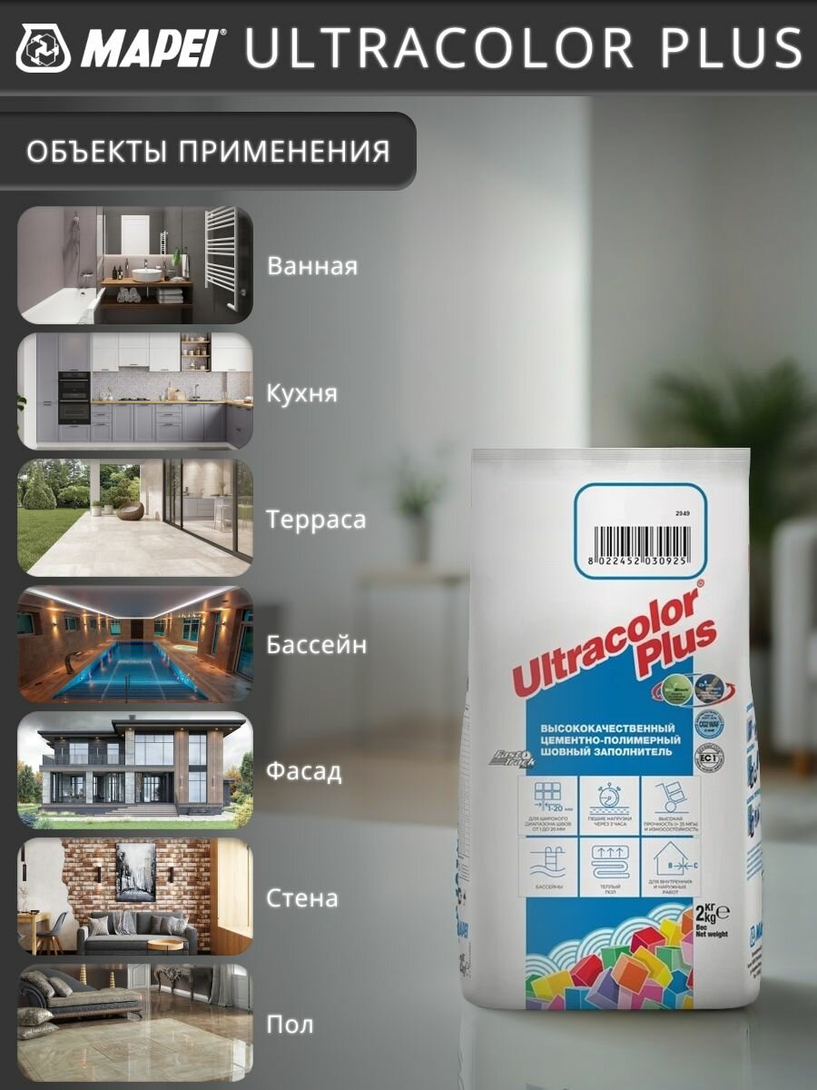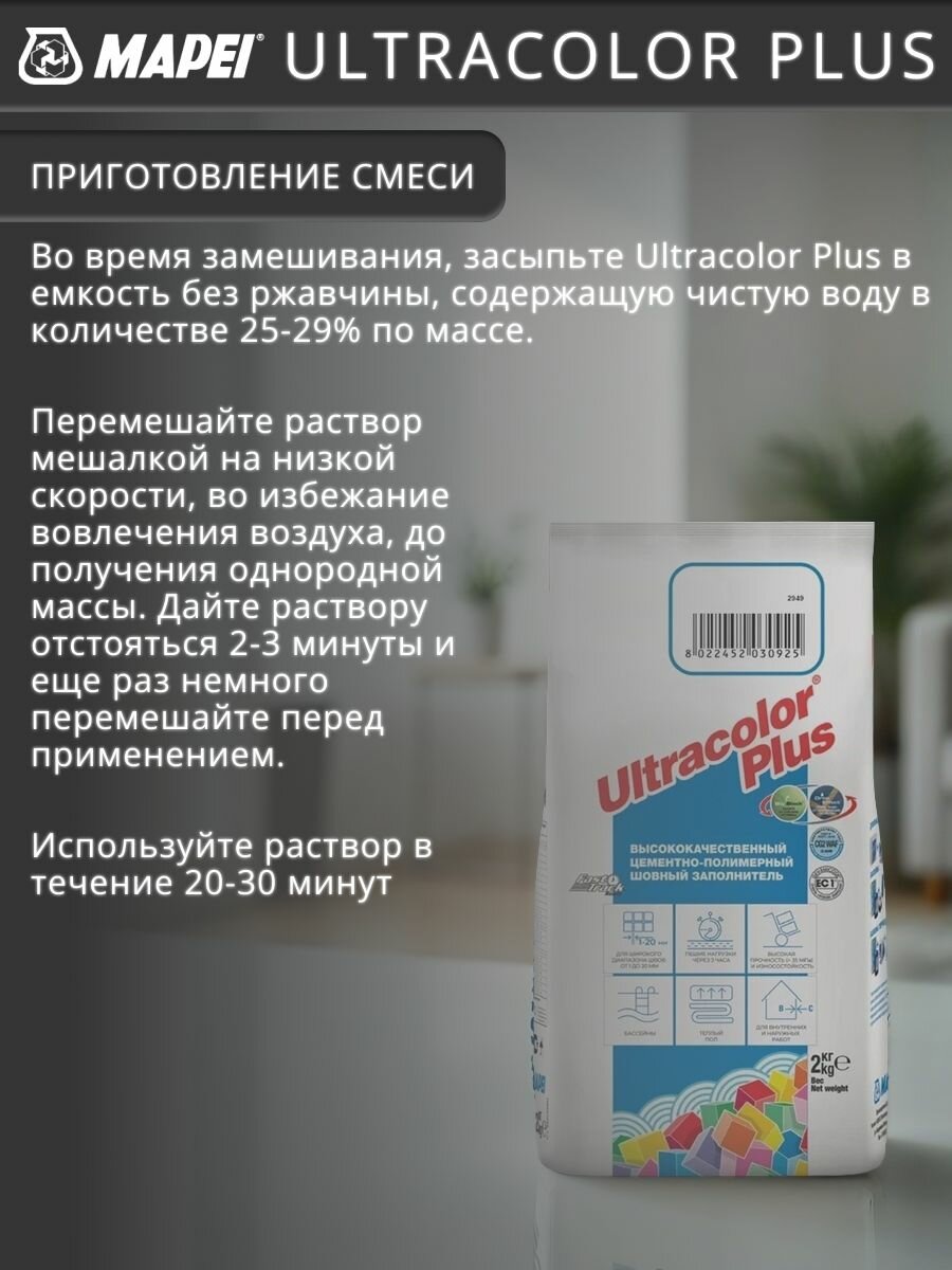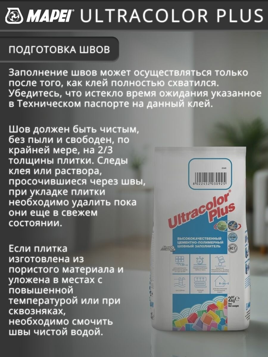 Затирка для плитки Mapei Ultracolor Plus №169 голубая сталь 2 кг / цементная затирка противогрибковая, влагостойкая интересное: