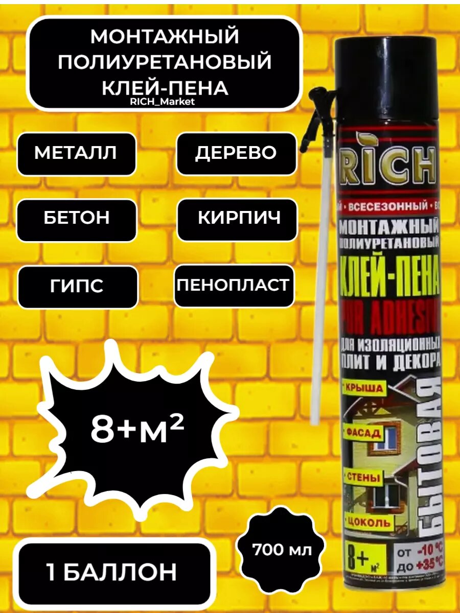 Монтажный полиуретановый клей-пена RICH, с трубкой-адаптером, 1 баллон интересное: