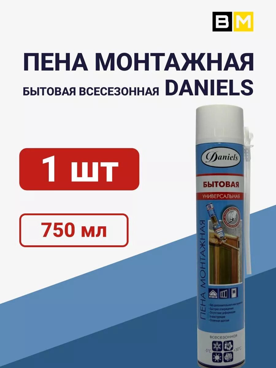 Пена монтажная бытовая DANIELS 750ml 1шт интересное: