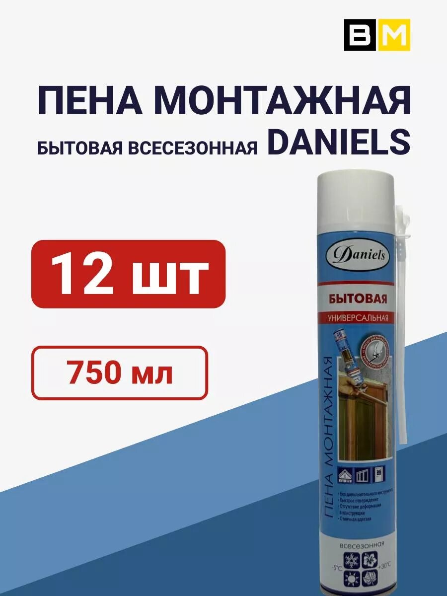 Купить Пена монтажная бытовая DANIELS 750ml 12шт