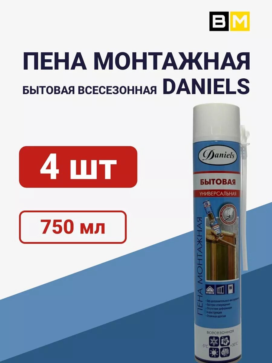 Купить Пена монтажная бытовая DANIELS 750ml 4шт