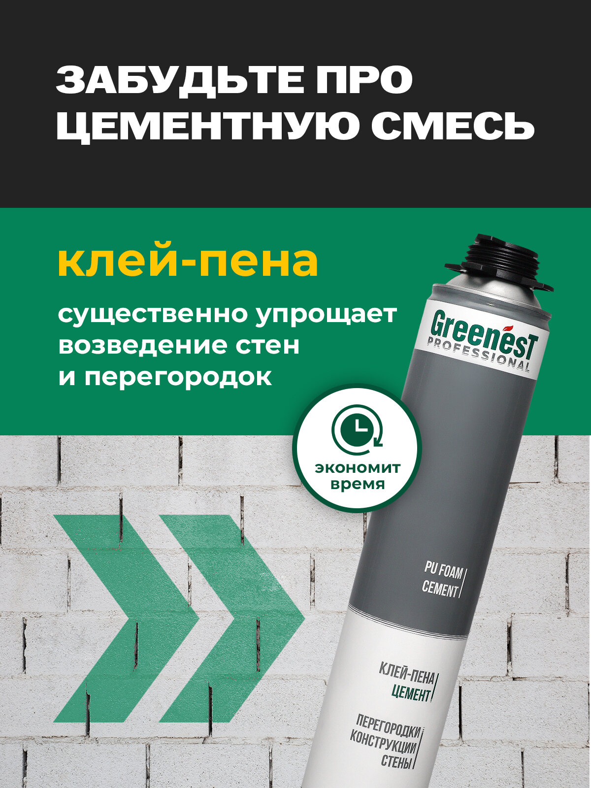 Клей-пена цемент GreenesT монтажная всесезонная профессиональная 1 шт.