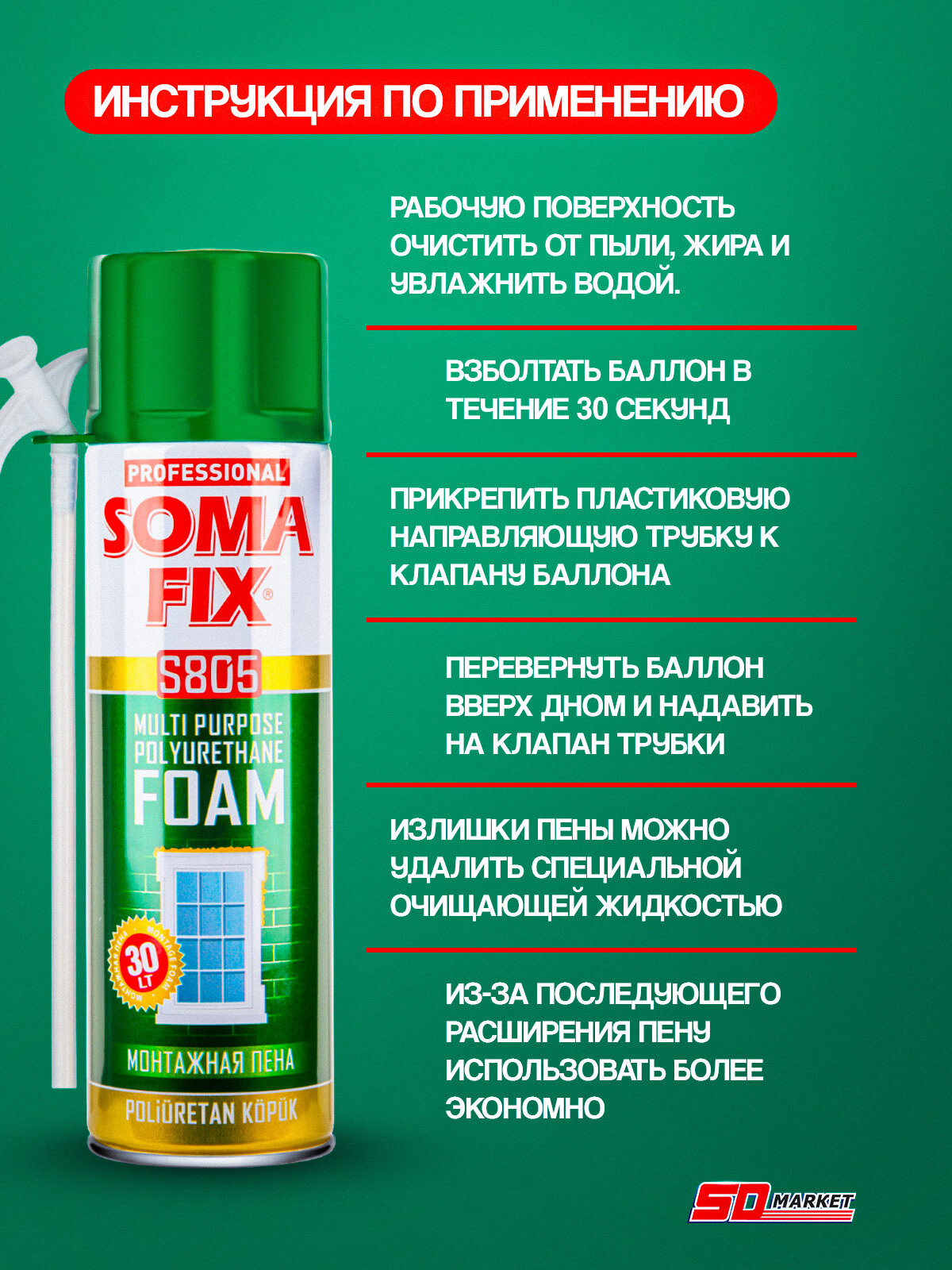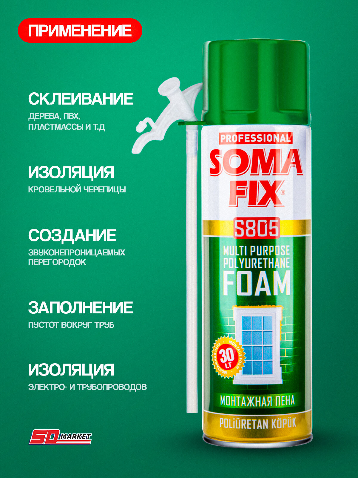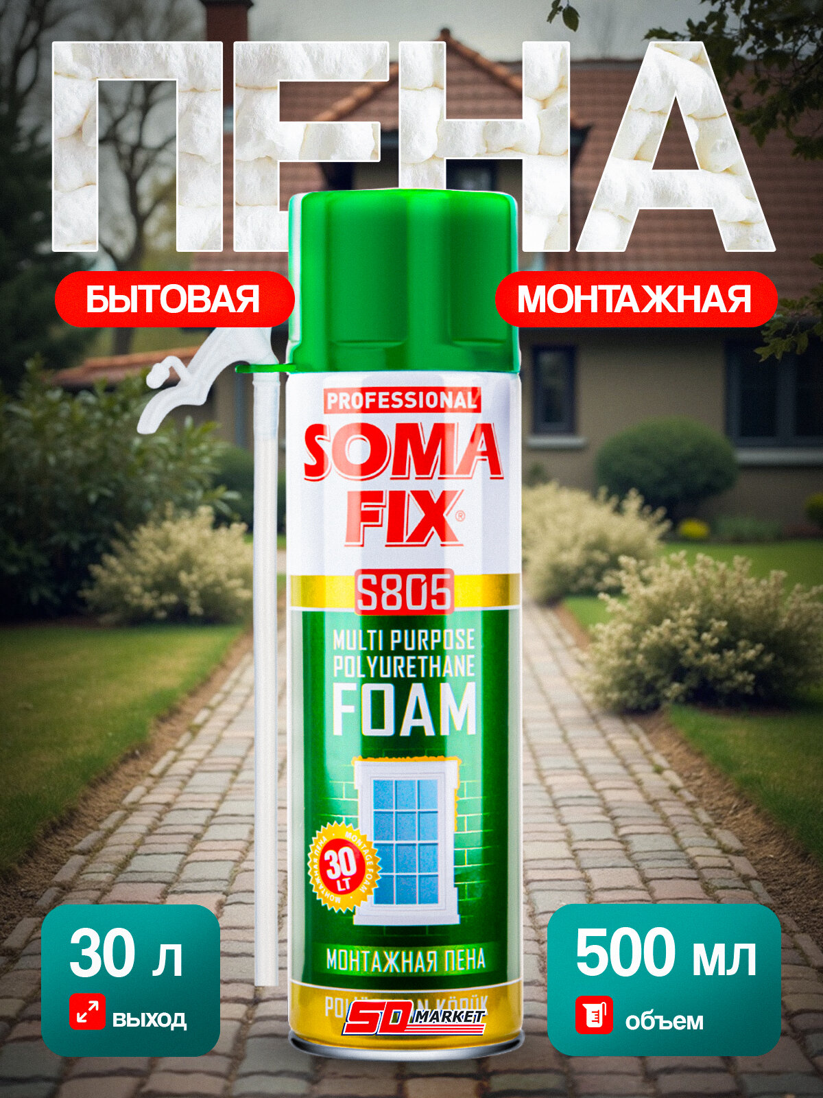 Пена монтажная с трубкой 500мл, пена монтажная бытовая Somafix, выход до 30 литров интересное: